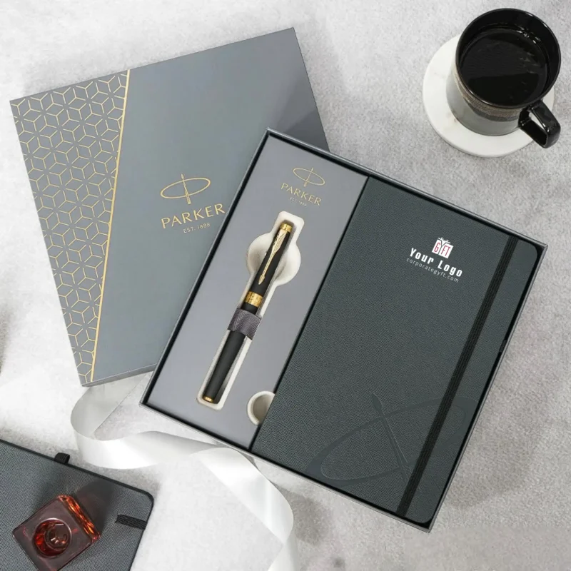 The Parker premium gift set is a timeless combination of elegance, performance, and practicality. Designed for professionals who value style and quality, this set includes a beautifully crafted Parker pen featuring a sleek black body with a luxurious gold trim that ensures smooth and effortless writing. Complementing the pen is a premium hardcover notebook with lined pages and a durable, high-quality cover, perfect for jotting down ideas, notes, or daily plans. Packaged in an elegant presentation box, it’s ideal for corporate gifting, office use, or personal milestones. With the option for custom logo branding, the Parker Premium Gift Set perfectly blends sophistication and functionality, making every writing experience truly refined.