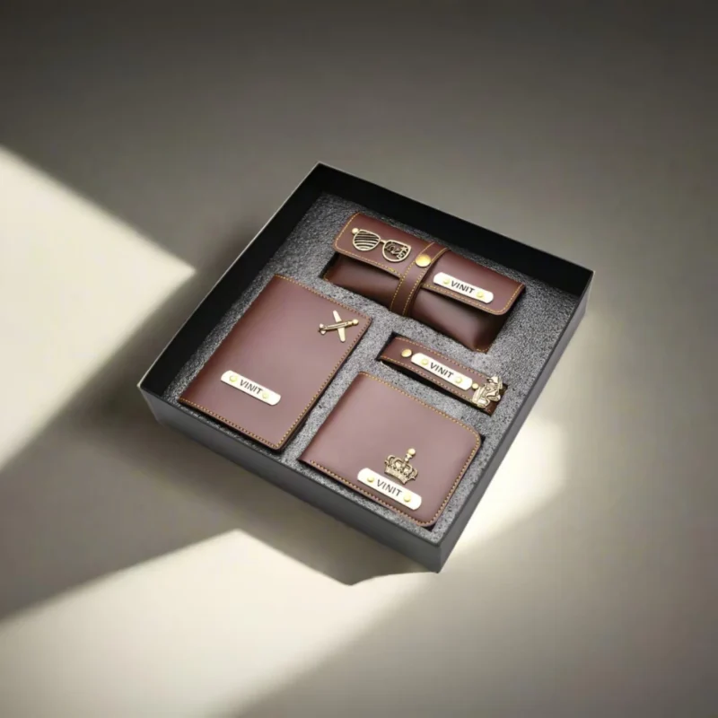 Make every gift memorable with this thoughtfully designed personalized men’s travel combo. Crafted from high quality vegan leather, the set includes four practical essentials that combine style, durability and everyday functionality. Each item can be customized with a name and charm using permanent engraving that does not rust or fade over time. The coordinated design and premium finish make the set ideal for travel and daily use while maintaining a refined look. Packed in an elegant gift box, it is perfect for birthdays, special occasions or thoughtful surprises. This personalized combo offers a unique way to show appreciation while gifting something both stylish and useful.