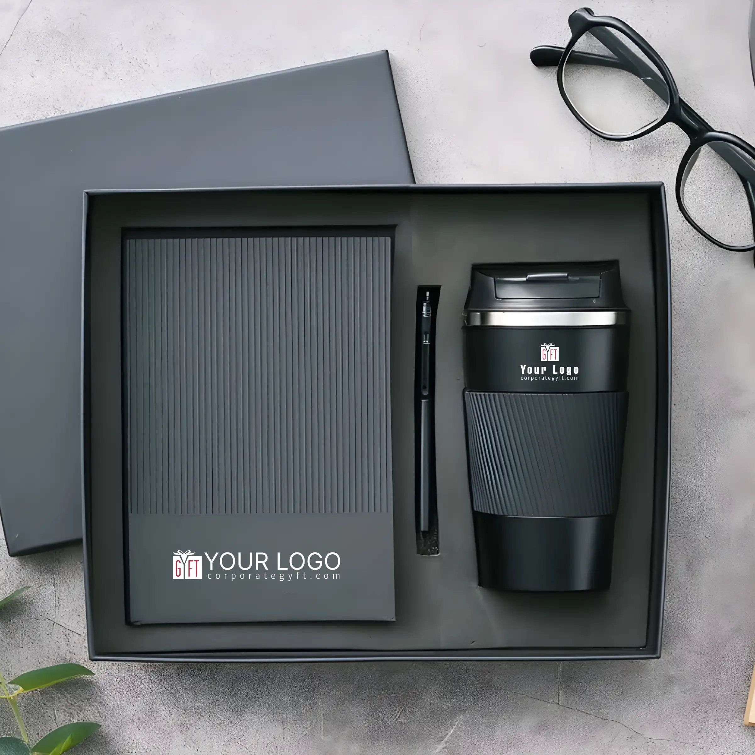 Corporate gift set thoughtfully curated with a double-wall tumbler, sleek executive metal pen, and a notebook crafted with a high-quality cover for everyday professional use. Luxury gift box packaging enhances presentation and ensures a premium unboxing experience. Refined combination of functionality and elegance makes this set suitable for modern work environments. Smooth finishes and balanced design add a sophisticated visual appeal. Custom branding space allows logo and design printing for strong brand visibility. Ideal choice for corporate gifting, executive rewards, and employee onboarding programs.