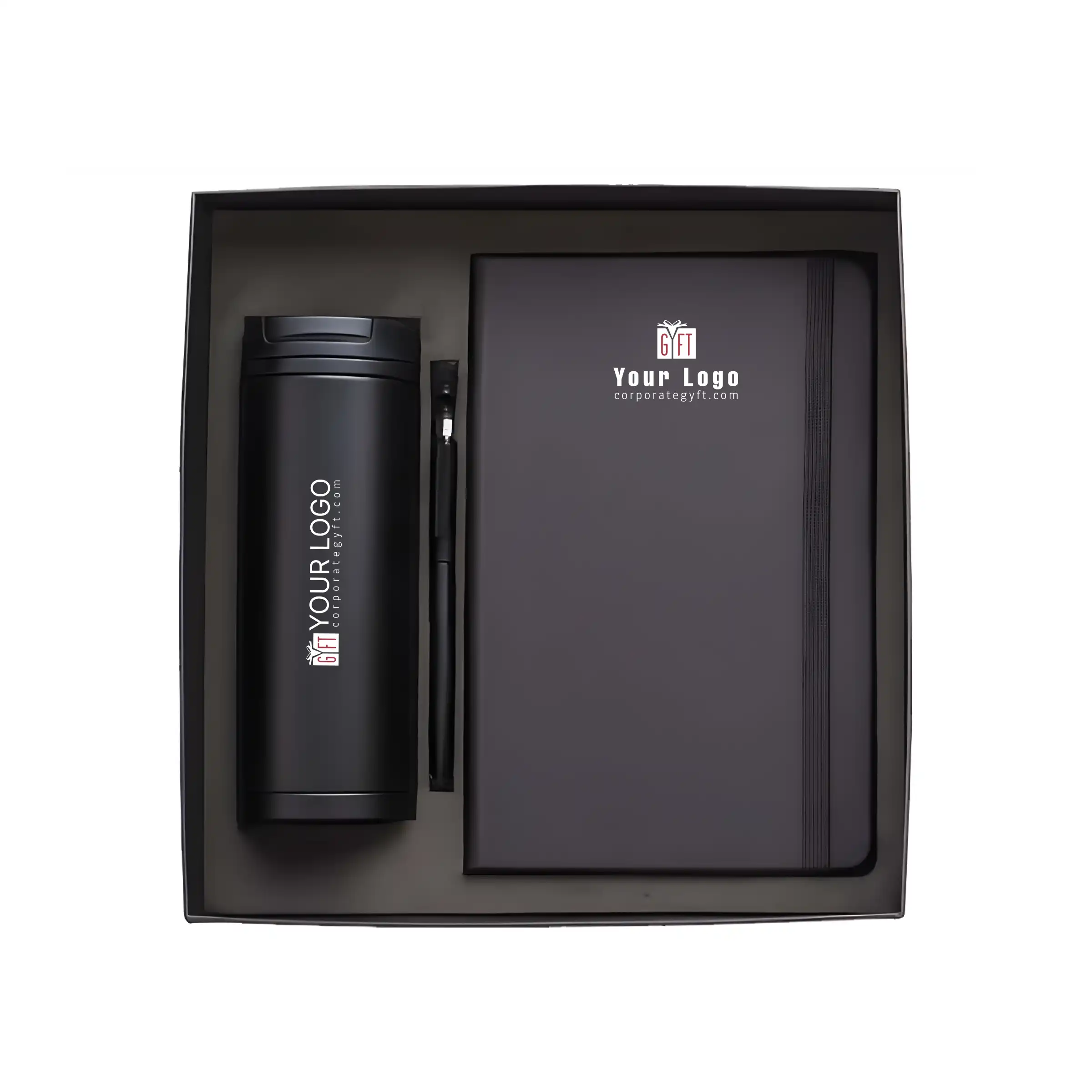 Experience a refined gifting option with this premium gift set designed for modern professionals. It includes an insulated tumbler that keeps beverages at the ideal temperature, a smooth-flow metal pen for effortless writing and a lined-page notebook with an elastic band and bookmark for everyday organization. Each item is thoughtfully selected to offer practicality with an elegant touch. The set is neatly packed in a sturdy box, ensuring safe delivery and an impressive unboxing. With ample space for custom logo printing, it is perfect for executive gifting, onboarding kits, client appreciation and festive giveaways.