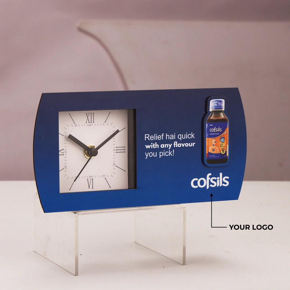Crafted with a sleek and modern design, this table clock adds a professional touch to any workspace while ensuring a clear and accurate time display. The compact 3.5″ × 7.5″ size makes it easy to place on office desks, reception counters, or study tables without occupying much space. Durable construction ensures long-lasting performance, making it suitable for regular daily use. A generous 3″ × 3.25″ branding area allows customized logo printing, making it an excellent option for promotional activities. Ideal for corporate gifting, pharma branding, and marketing campaigns, it keeps your brand visible throughout the day. A clean aesthetic and reliable movement make this clock a functional and memorable desk accessory.