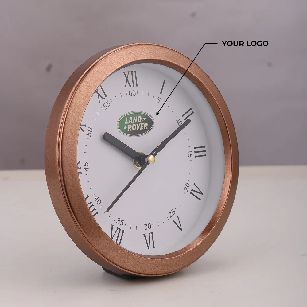 Crafted in a 6-inch circular design, the analog table clock features a clear 5.5-inch dial for easy visibility from any angle. Smooth-touch construction paired with a durable build makes it suitable for everyday use across study tables, office cabins, and home workspaces. A loud alarm rings for up to 30 minutes, offering reliable wake-up support for students and professionals. Lightweight yet sturdy with a 240 gms gross weight and 180 gms net weight, the clock balances portability with strength. Powered by a single AA battery, it ensures hassle-free, consistent performance. Space is available for custom logo printing, making it ideal for bulk branding, festive hampers, and promotional gifting. A practical addition to any desk setup with both function and style.