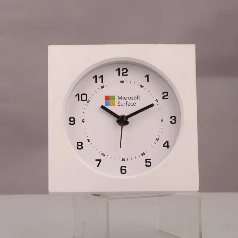 An analog table clock designed with a clean square profile brings a modern presence to workspaces and homes. Measuring 5.5″ × 5.5″ with a 4.5″ dial, it offers clear readability and balanced proportions. Durable yet lightweight construction with a 255 g gross weight and 200 g net weight ensures easy placement. Smooth analog movement supports dependable timekeeping for daily use. Space for custom logo and design printing makes it a strong branding tool. Ideal for corporate gifting, promotional campaigns and customized bulk requirements.