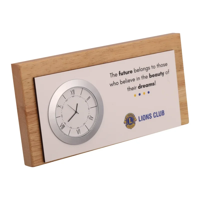 Sleek rectangular table clock designed in a 7.5″ × 3.5″ frame, perfect for study areas, office cabins and modern workspaces. Quartz movement ensures accurate timekeeping with smooth, reliable performance powered by a simple battery setup. Lightweight yet sturdy 290 g build offers stability while maintaining a refined, minimal appearance. Spacious 2.5″ × 3.5″ printing area allows impactful branding, motivational quotes or festive messaging. Versatile design makes it suitable for corporate hampers, employee gifting and home décor. Clean dial with Roman numerals enhances readability and adds a classic touch to its contemporary look. Perfect blend of functionality and branding utility for everyday desk use.