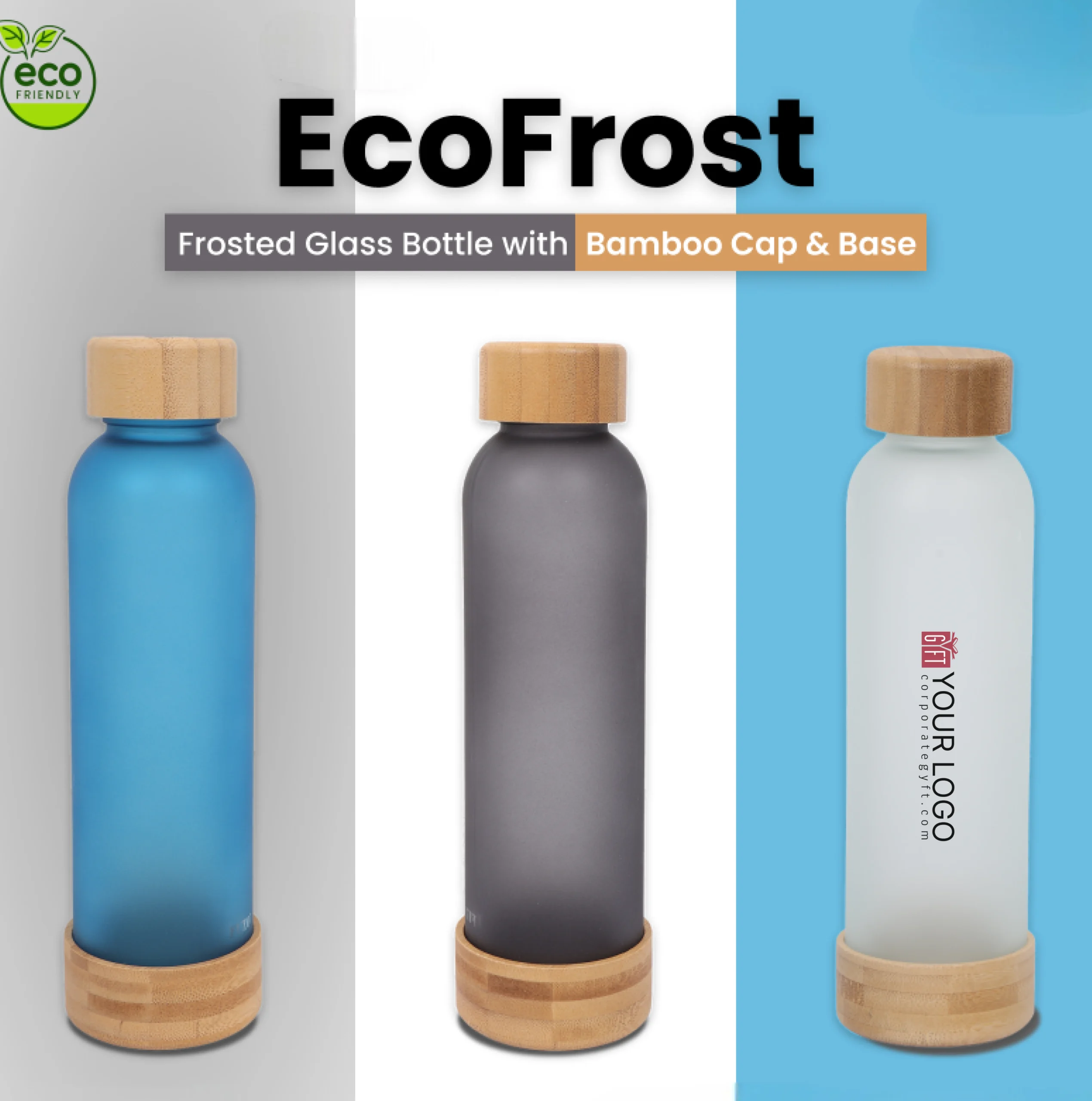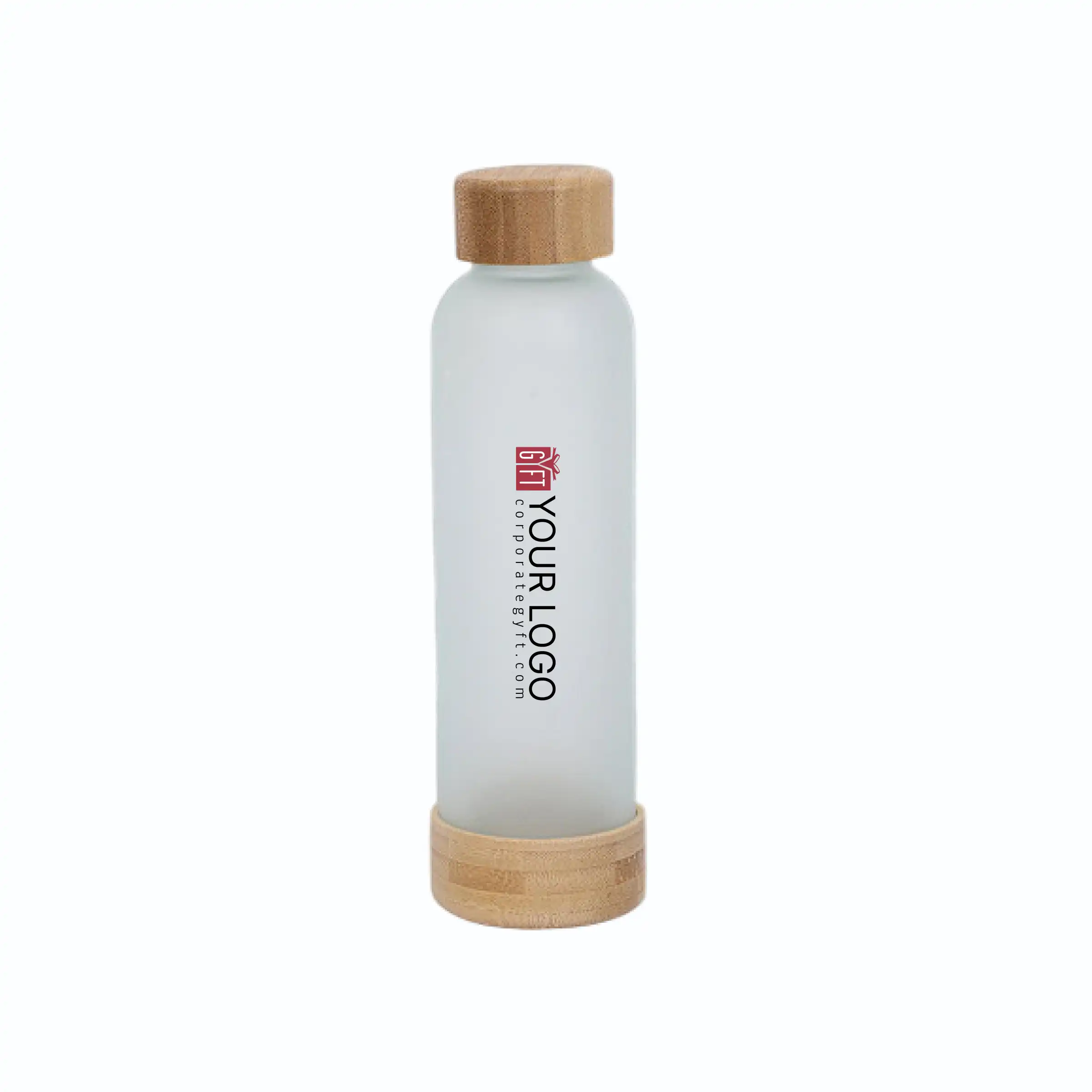 Bottle crafted from premium frosted glass in a refined 23×6.8 cm size, designed to elevate daily hydration with a clean and modern aesthetic, featuring a wide mouth opening for easy filling, smooth sipping, and effortless cleaning, enhanced with a natural bamboo cap and base that add a sustainable and premium finish, well balanced for comfortable daily use at desks or on the go, and finished with space available for custom logo and design printing, making it suitable for daily hydration, office use, eco-friendly gifting and students.