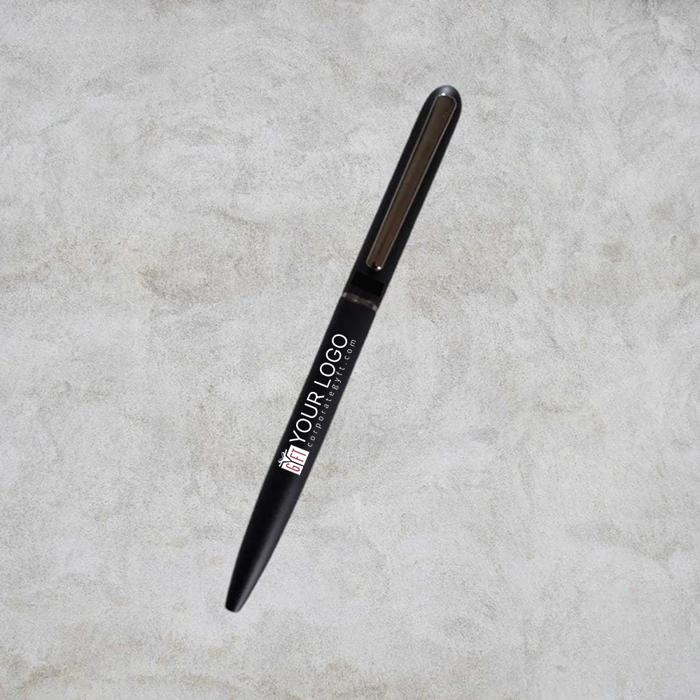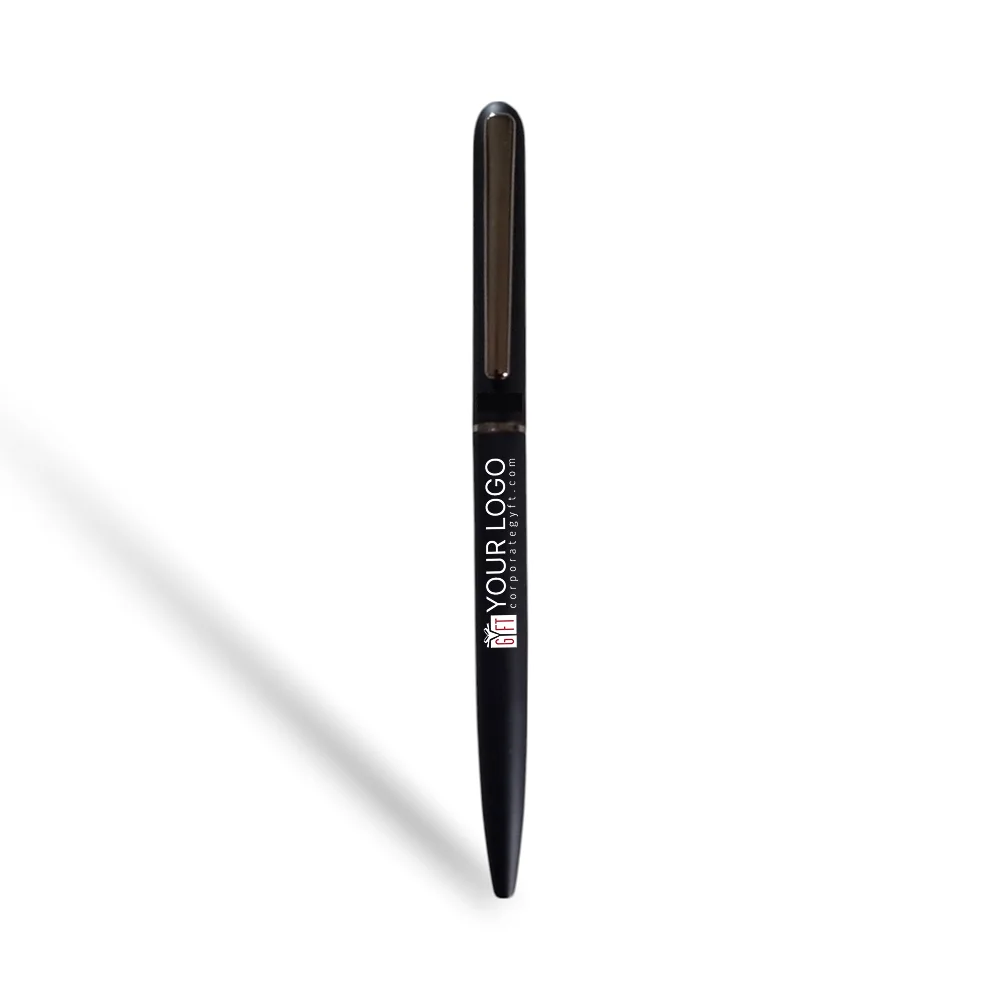 Designed for everyday elegance, this metal pen features a refined black finish and integrated pocket clip for effortless portability. Its smooth writing performance and sleek profile make it an ideal choice for professionals and brand-conscious businesses.