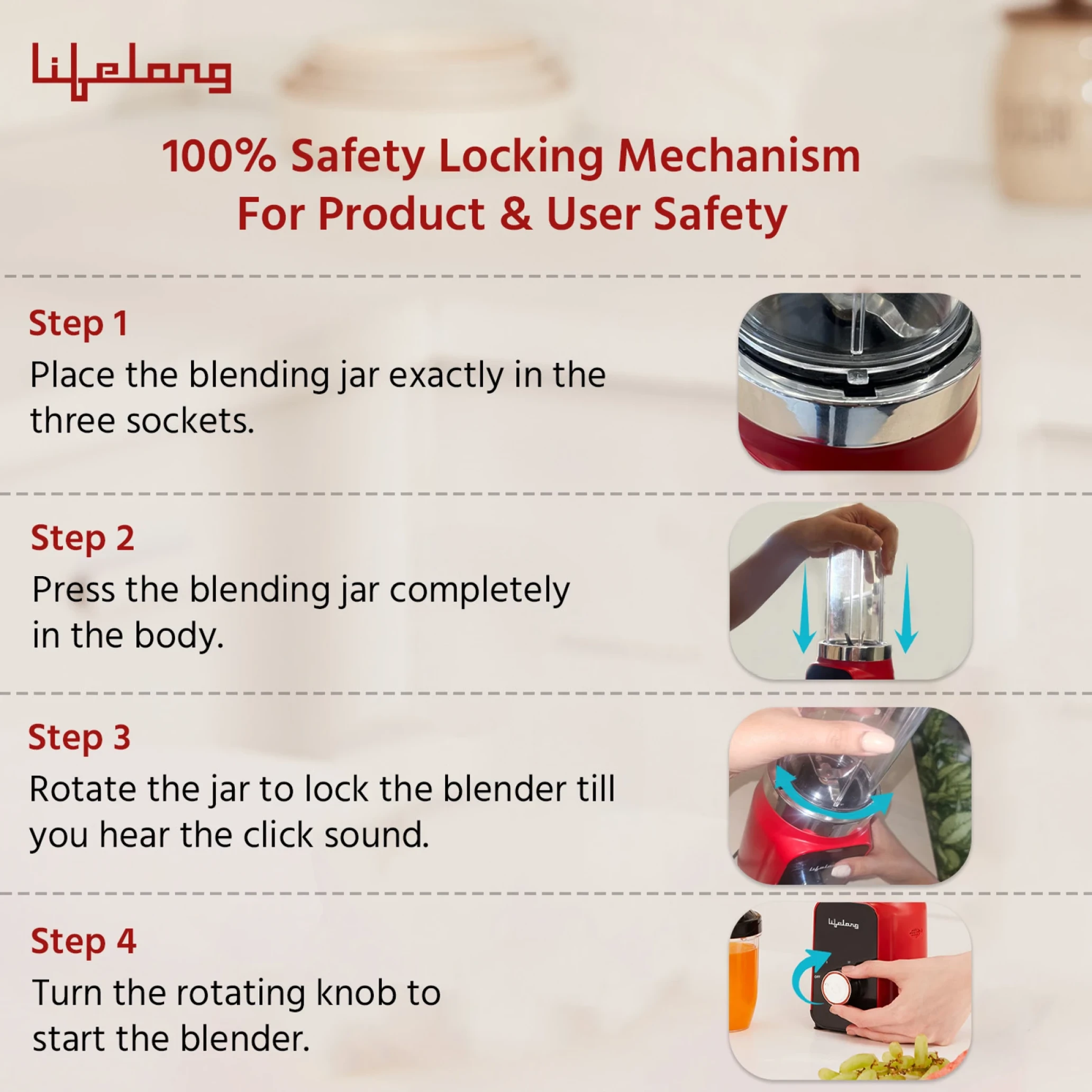 Lifelong Nutri Blender with 2 Jars - Red