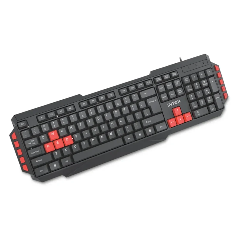 Intex Quick wired USB keyboard delivers a reliable everyday typing solution with plug and play connectivity that works seamlessly across Windows and Linux systems, making setup effortless for both home and office environments. The spill-resistant build adds an extra layer of protection against accidental liquid splashes, ensuring durability during daily use. Designed with a standard 104 premium membrane layout, it offers precise and silent operation for smooth and distraction-free performance, while the UV-coated surface enhances longevity and maintains a clean look over time. Stylish red accent detailing adds a modern visual appeal, complemented by one-touch access to 10 additional multimedia shortcuts for quick control and improved efficiency. Custom logo and design printing space makes it suitable for branding requirements, positioning it as a practical choice for offices, home use, students, daily work and corporate gifting.