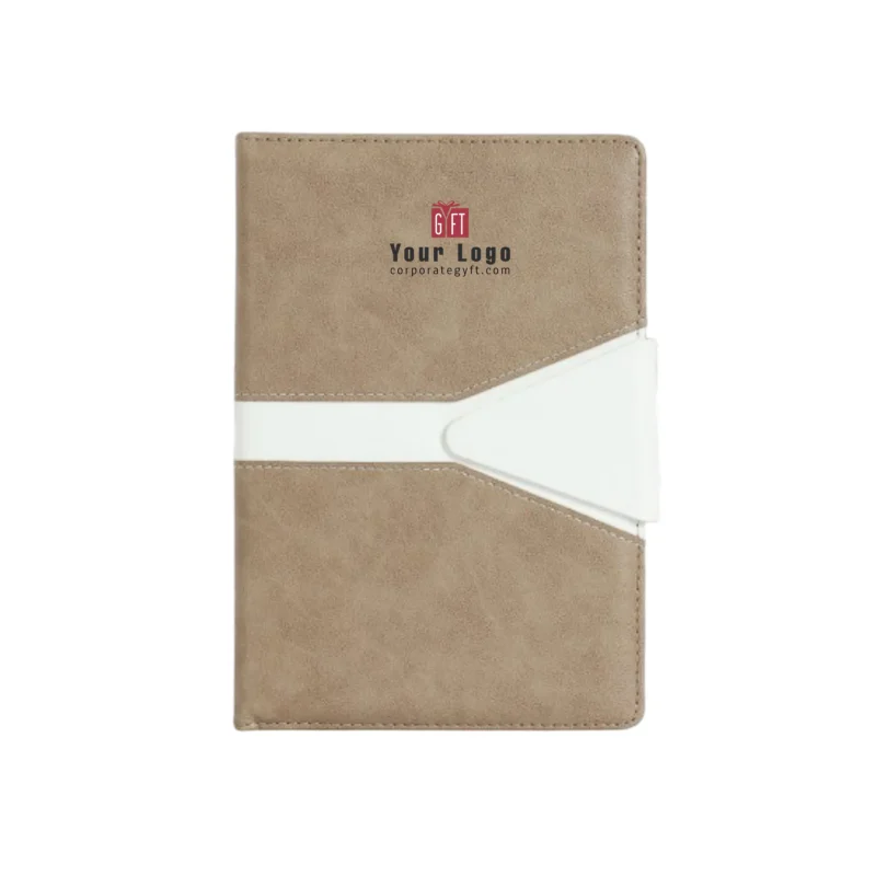 A5 notebook crafted from premium soft leatherette in a refined 14.3×21.3 cm size, designed to offer a smooth and elegant writing experience with a professional finish, featuring a secure magnetic flap closure that keeps pages neatly protected, filled with high-quality 70 GSM paper and 96 non-dated inner sheets to support flexible note-taking, planning, and creative thinking, enhanced with neatly ruled pages and a ribbon bookmark for easy organization and quick access, carefully packed in a polybag for safe handling and presentation, and finished with space available for custom logo and design printing, making it well suited for students, professionals, corporate gifting, and festive giveaways.