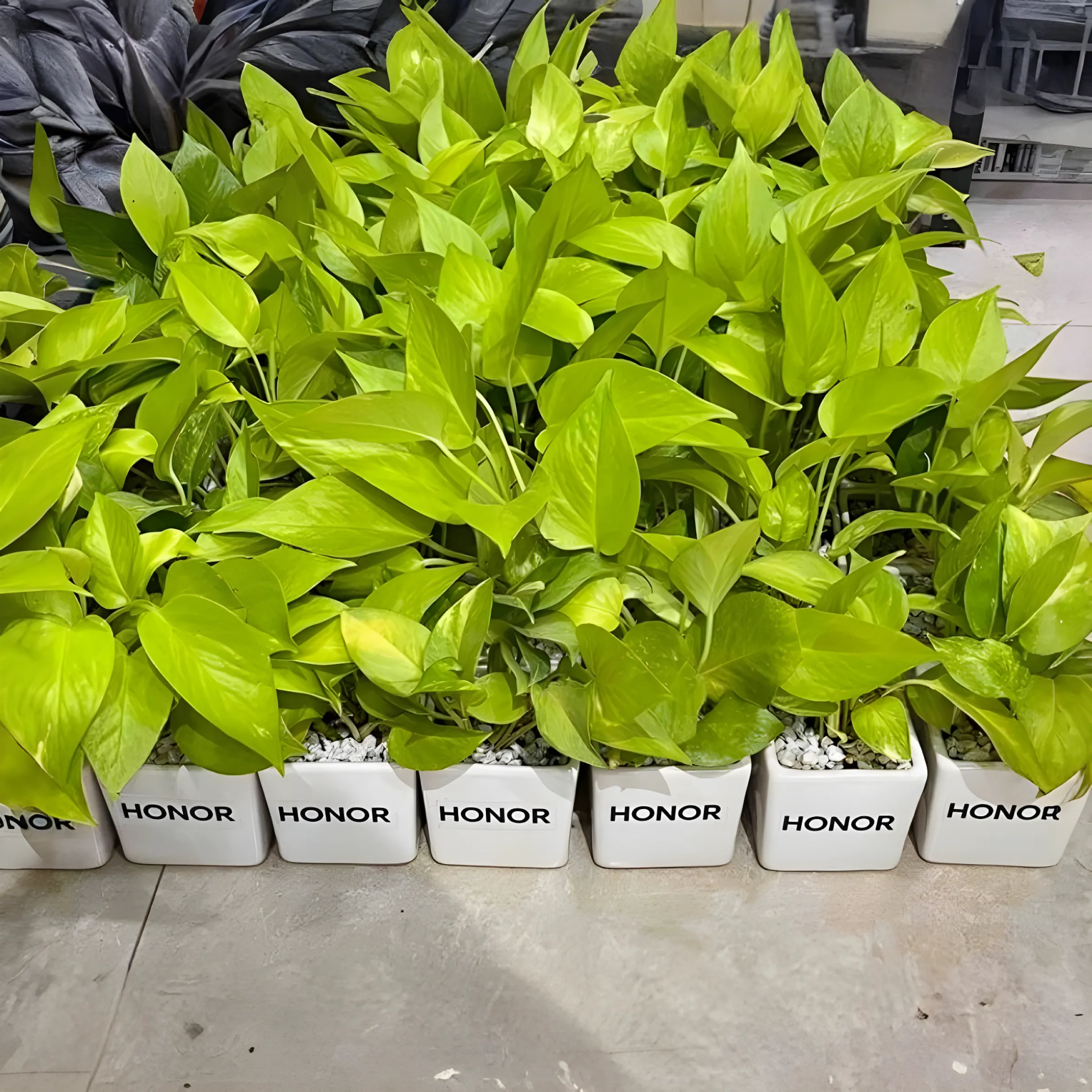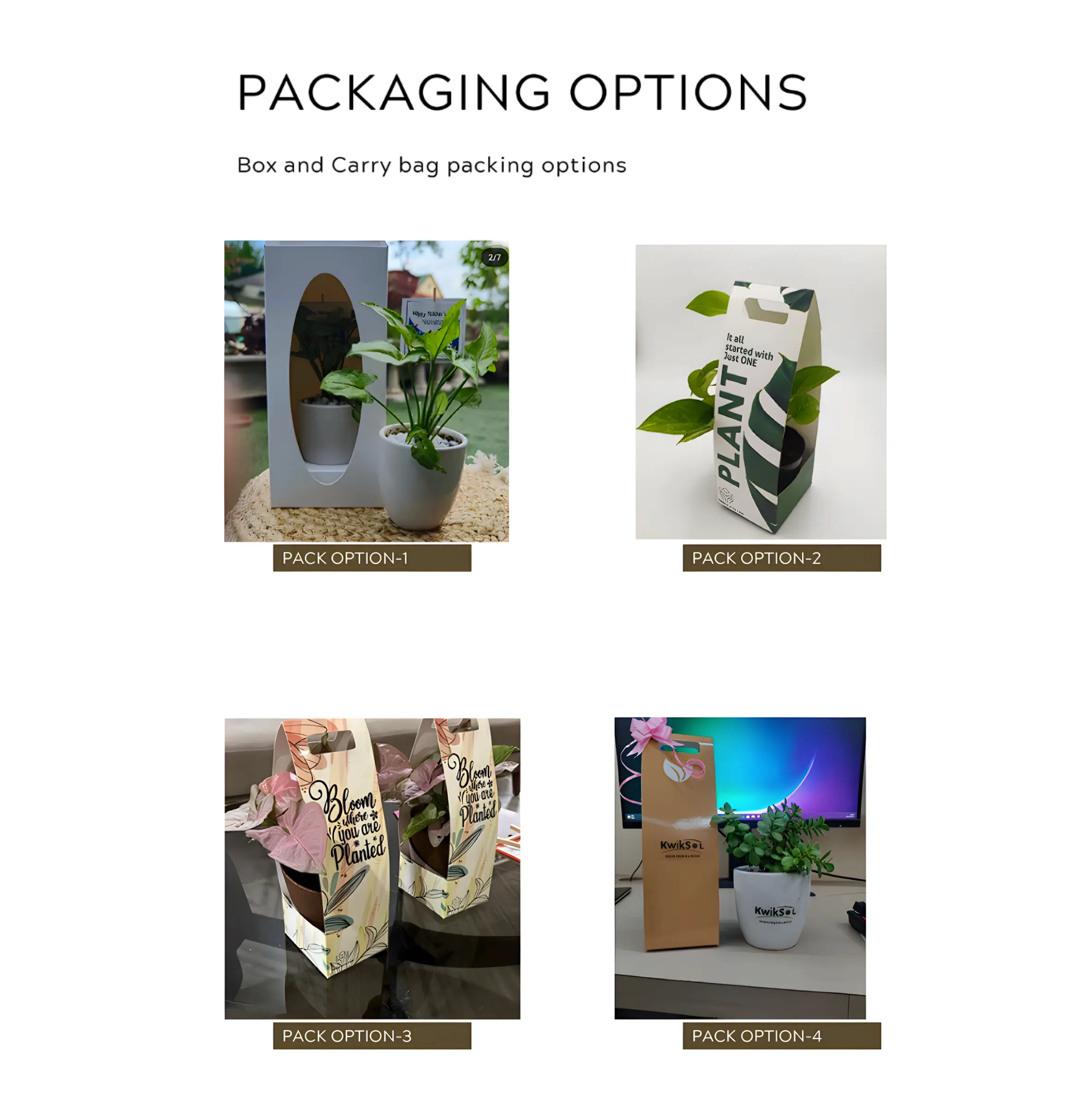 The ceramic square pot with golden money plant is a perfect blend of modern design and natural greenery, ideal for enhancing any living or working space. Crafted from high-quality ceramic, the pot features a clean square shape that complements contemporary interiors while providing durability for everyday use. The golden money plant adds a fresh, lively touch with its attractive foliage and natural air-purifying benefits. Available in 3-inch and 4-inch sizes, it fits effortlessly on office desks, shelves, countertops, or balconies. Easy to maintain and visually appealing, this planter makes a thoughtful choice for home décor, office styling, and corporate gifting. Its elegant appearance and functional benefits make it suitable for both personal use and professional environments.
