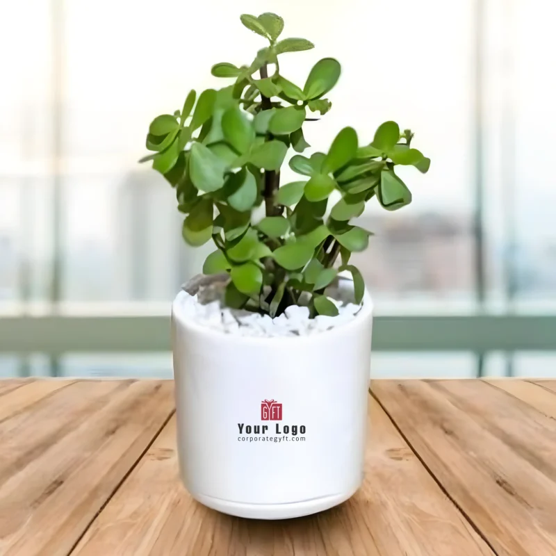 The ceramic cylindrical pot with jade plant is designed to add a clean and contemporary green accent to any space. Crafted from premium-quality ceramic, the cylindrical planter offers a smooth finish and a modern silhouette that complements minimalist interiors. The jade plant, a hardy succulent known for its air-purifying qualities and low-maintenance nature, brings lasting freshness with minimal care. Available in 3-inch and 4-inch sizes, it is ideal for desks, shelves, side tables, and window sills. Its compact size makes it suitable for both indoor and outdoor placement. Perfect for everyday décor and thoughtful corporate gifting, this planter combines style, durability, and natural appeal.