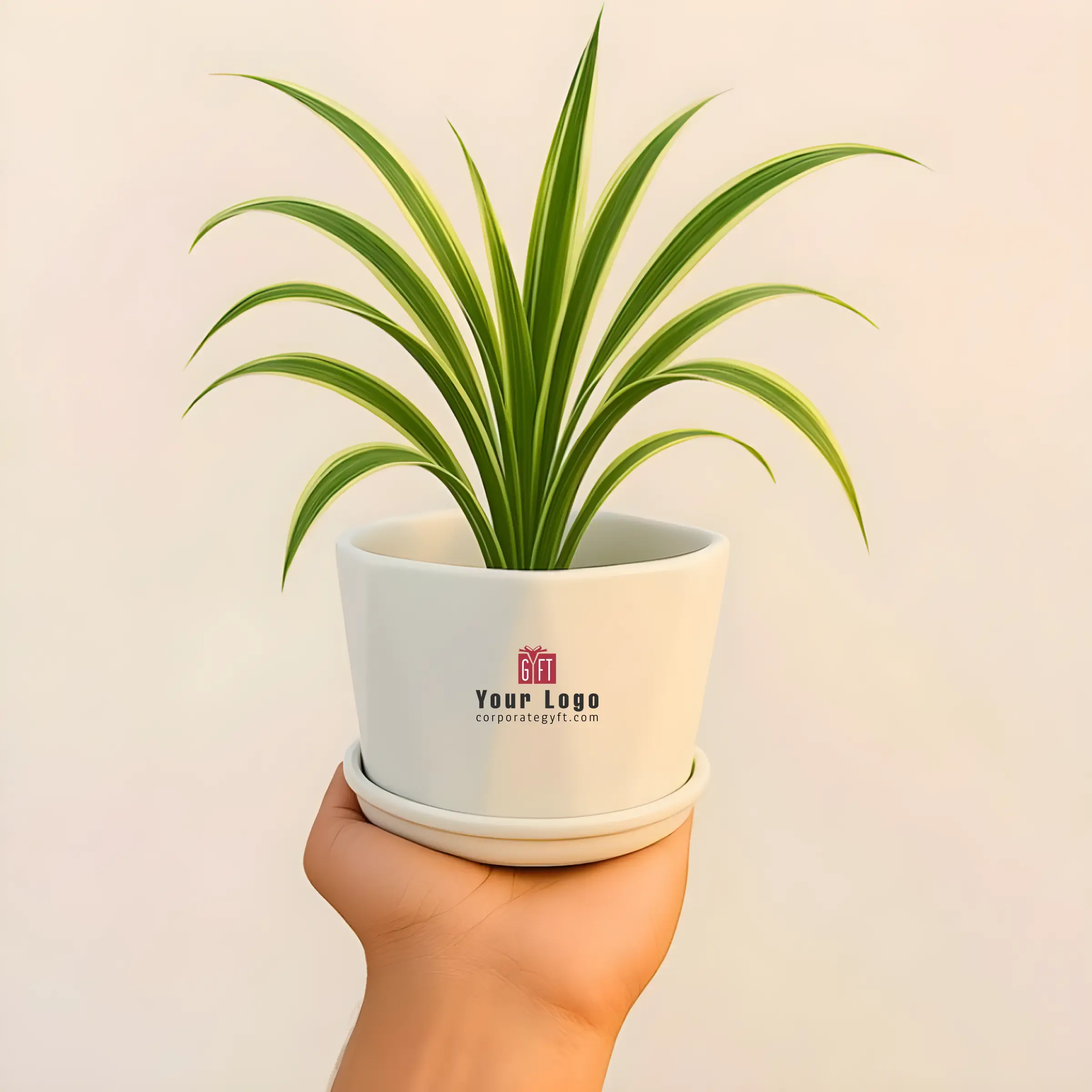 This 4-inch spider plant comes in a beautifully crafted ceramic pot, combining natural greenery with a stylish, minimalist design. The ceramic pot features a smooth and durable finish, adding elegance to desks, shelves, countertops, or bedside tables. Spider plants are known for their air-purifying qualities, resilience, and low-maintenance care, making them ideal for both beginners and plant enthusiasts. Its compact size makes it perfect for homes, offices, and workspaces, providing a refreshing and calming touch to interiors. This planter also serves as a thoughtful gift option, blending natural beauty with functional décor.