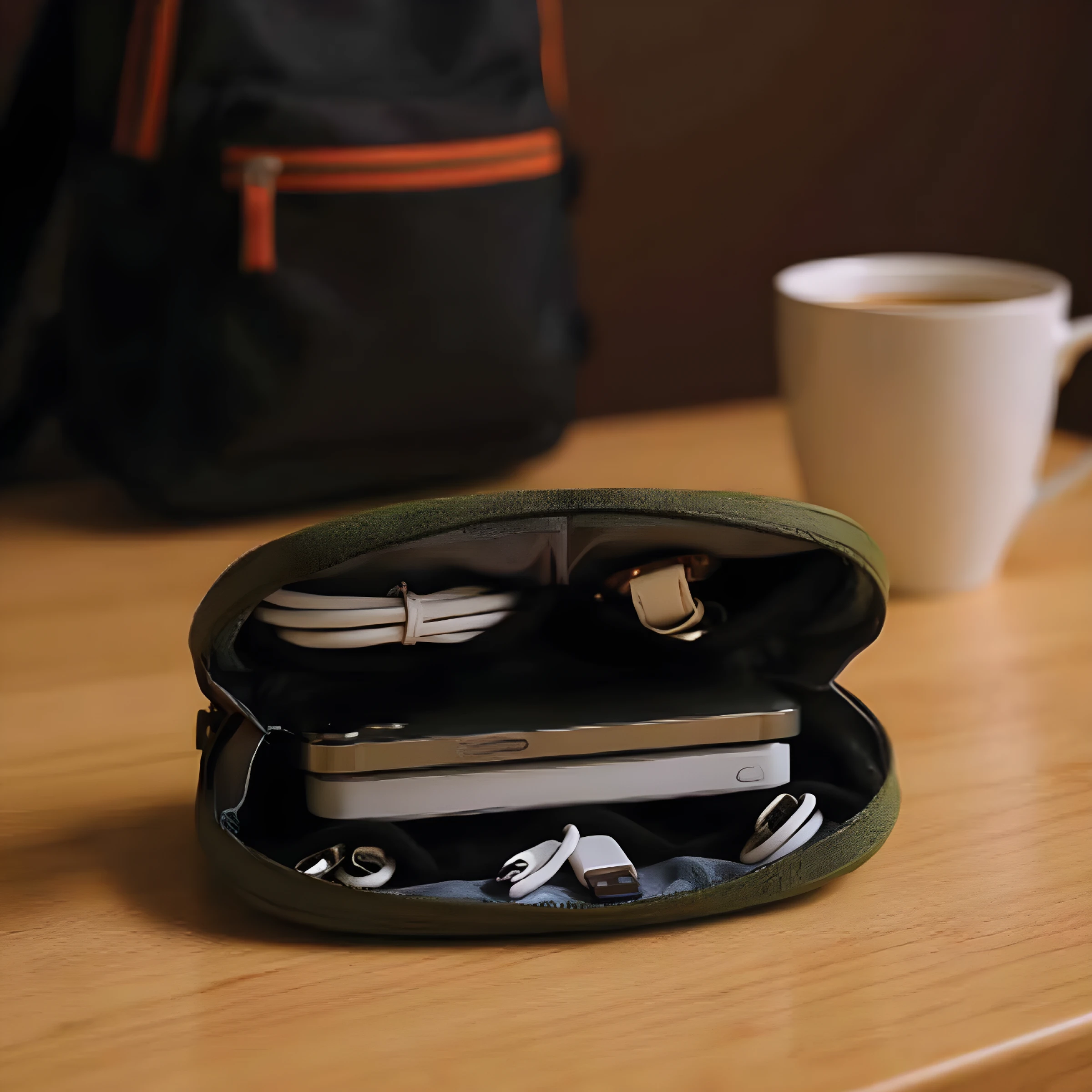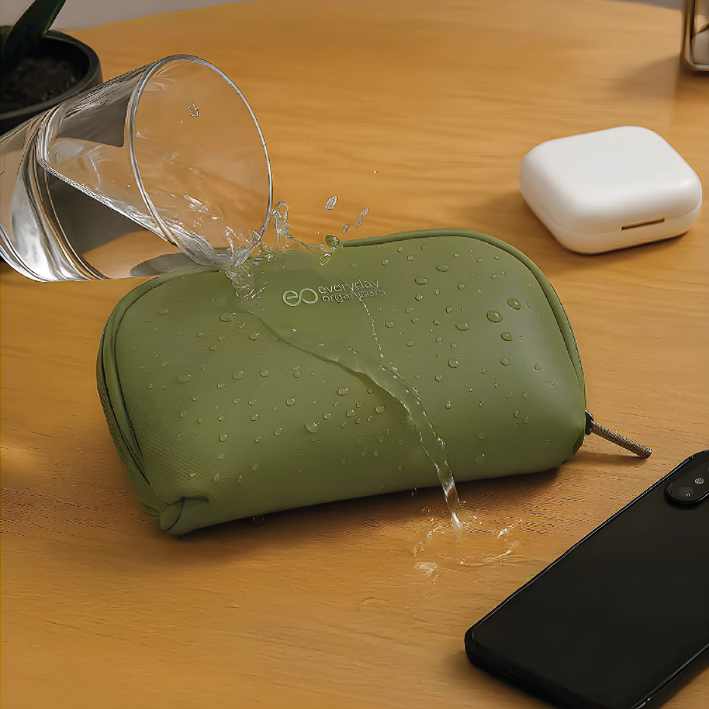 Compact and thoughtfully designed, the EO tech pouch features a grippy, water-resistant fabric that helps protect your essentials from spills while offering a secure hold during everyday use. The convenient compact carry design with a smooth zip closure makes it easy to open, close and carry wherever you go, while EO branding on the front adds a clean, professional look. Inside, 6 intelligently designed compartments provide organized storage for cables, chargers, earbuds, and small tech accessories, reducing clutter and making items easy to find. Packed as a single unit pouch, it supports spill-resistant protection, organized storage, and effortless everyday carry, making it suitable for travel, office use, work desk organization, and daily tech essentials.