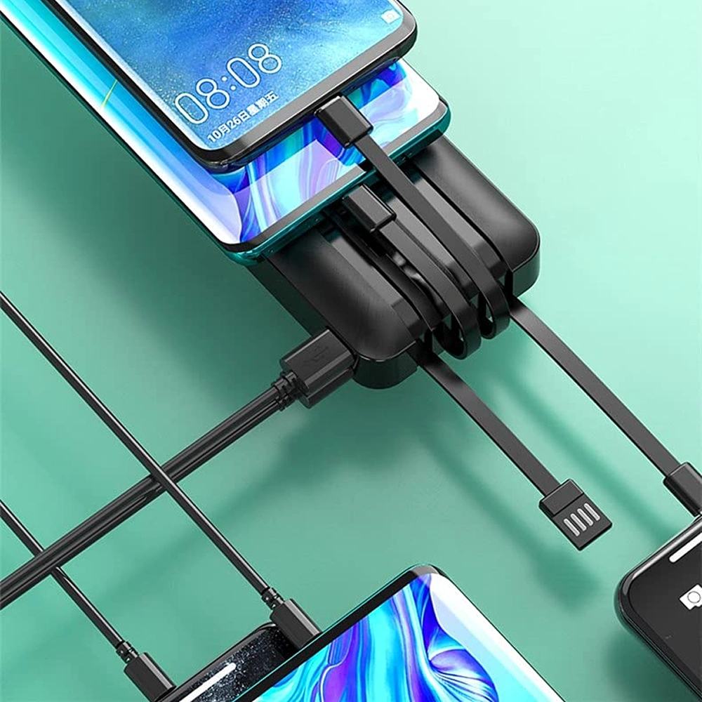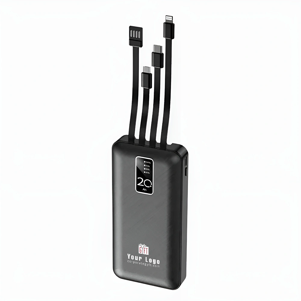 20000 mAh Power Bank with 4 Built-In Cables