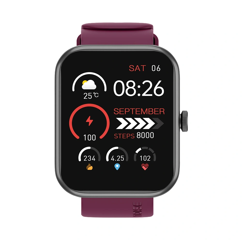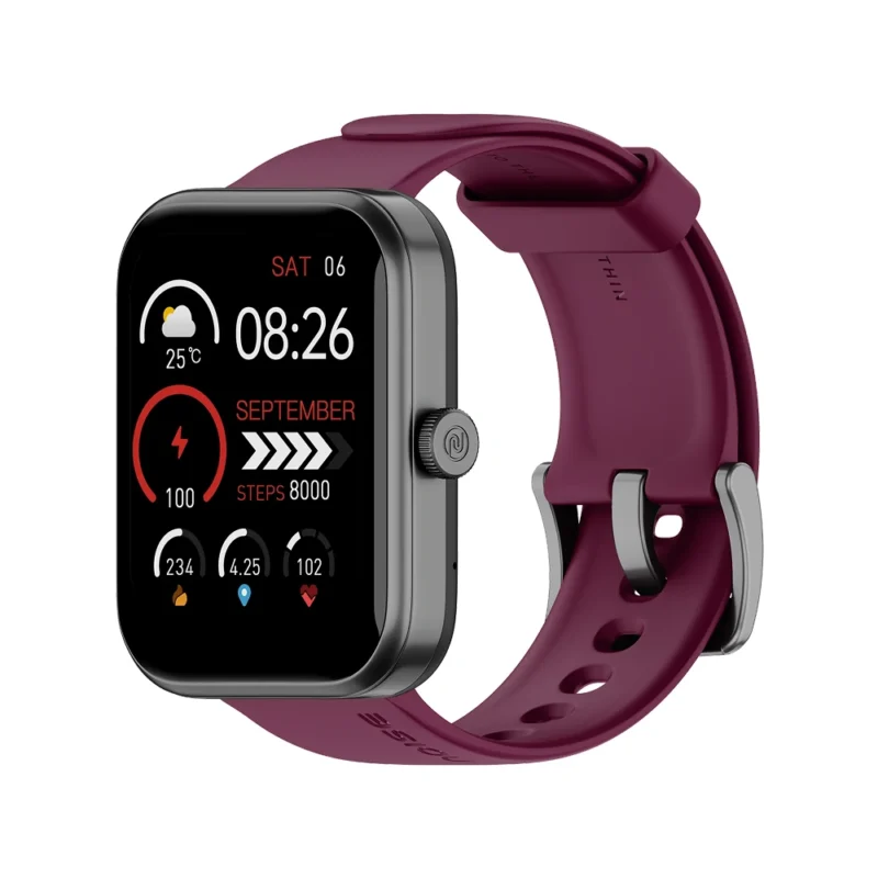 Smartwatch from Noise in a stylish wine color finish features a large 1.85″ TFT display for clear visuals and smooth everyday interaction. The integrated Noise Health Suite supports comprehensive activity and wellness tracking for regular fitness users. With 150+ watch faces, it allows easy personalization to match different moods and occasions. Multiple sports modes make it suitable for sports lovers and active lifestyles. The Bluetooth calling feature ensures seamless communication directly from the wrist during work or workouts. Space available for custom logo and design printing makes it ideal for branded promotions, while its overall design suits office wear and daily activity tracking perfectly.