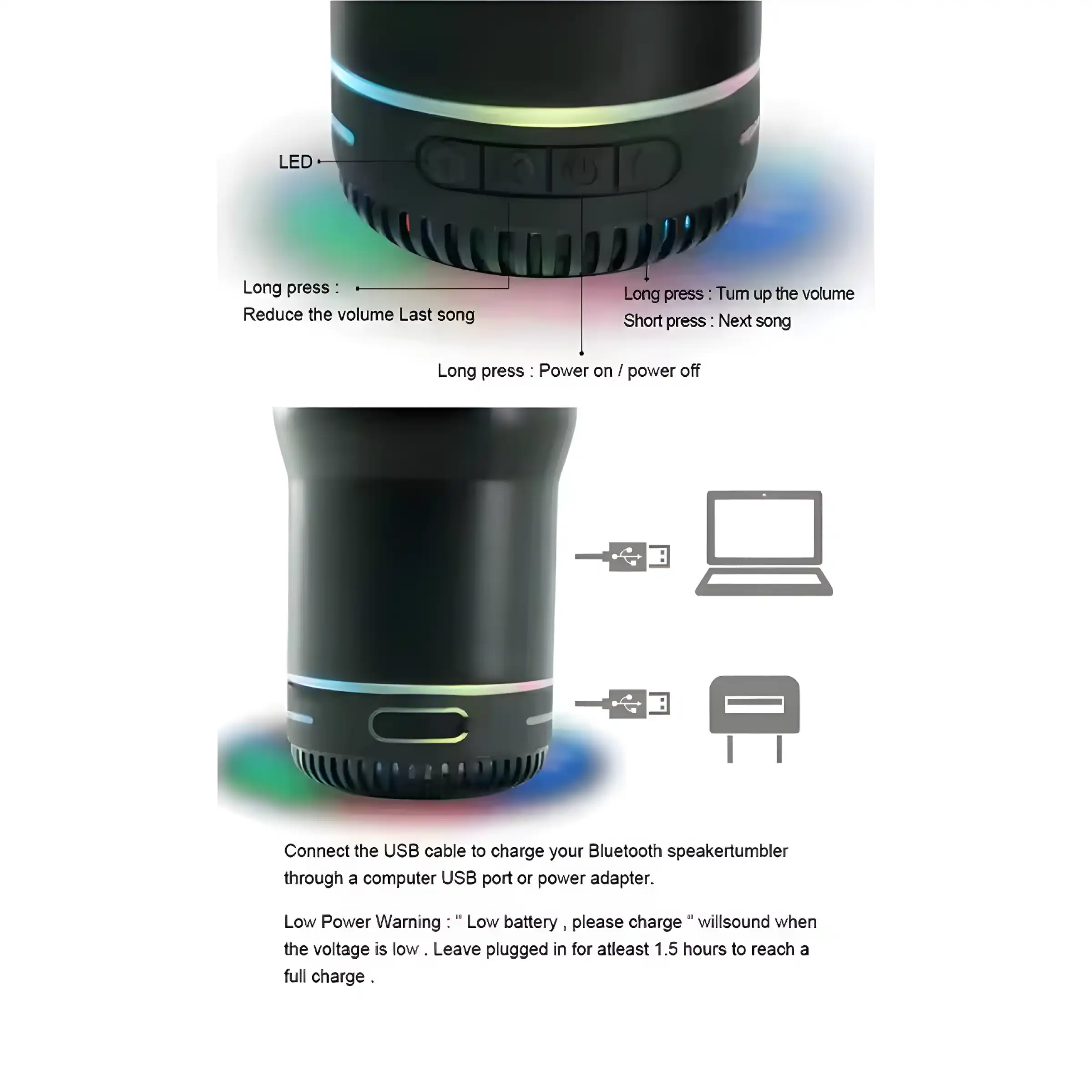 - Speaker: 3W Bluetooth speaker