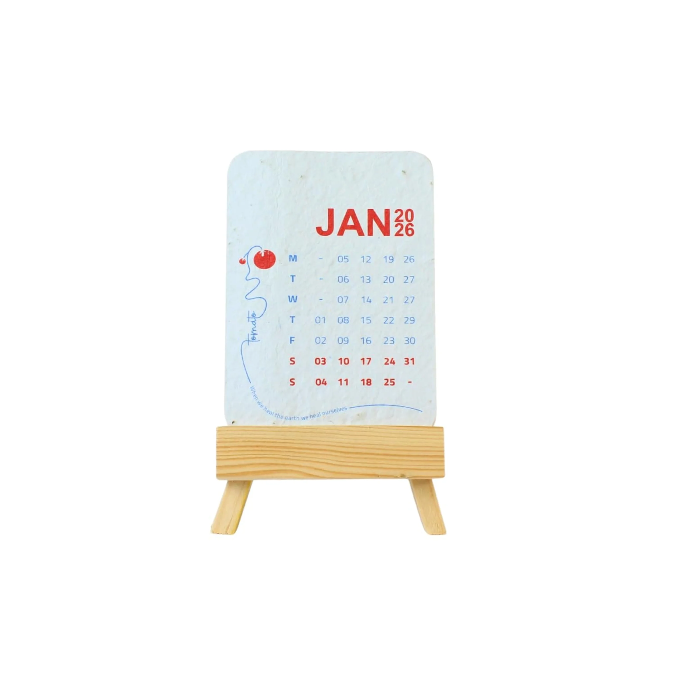 - Plantable calendar 3.5″ × 5″ with wooden easel stand