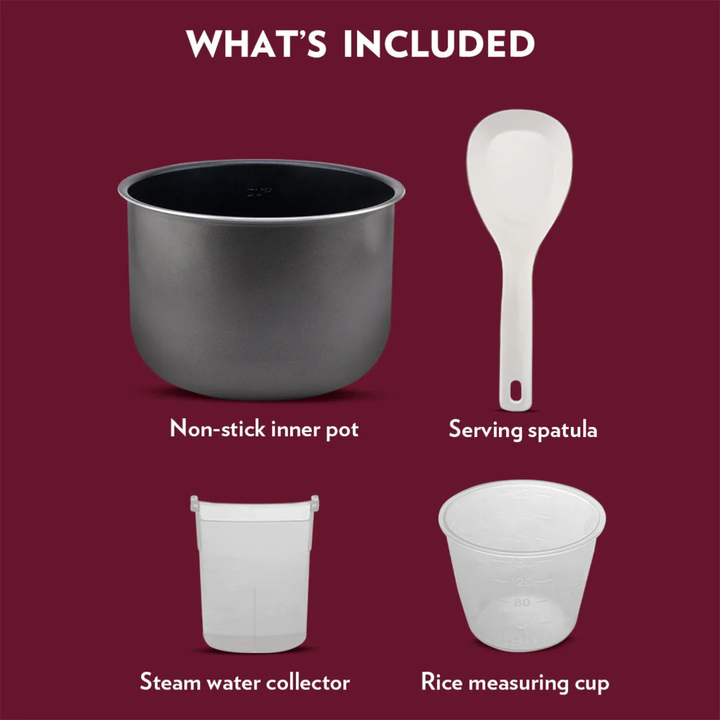 - Material: Thick non-stick pot with stainless steel housing