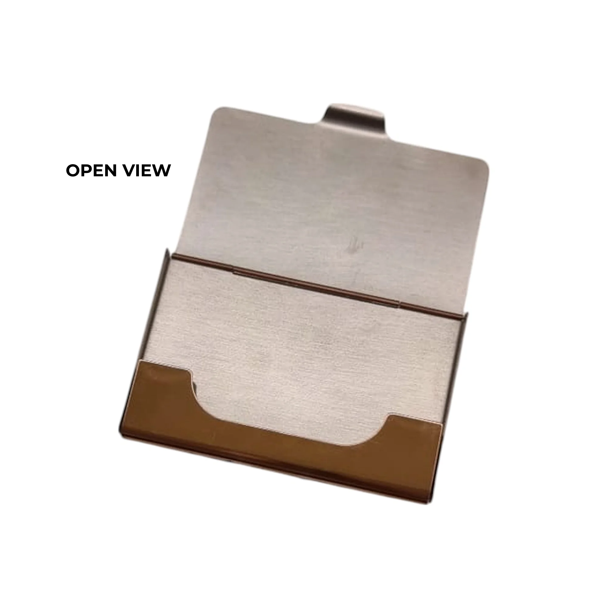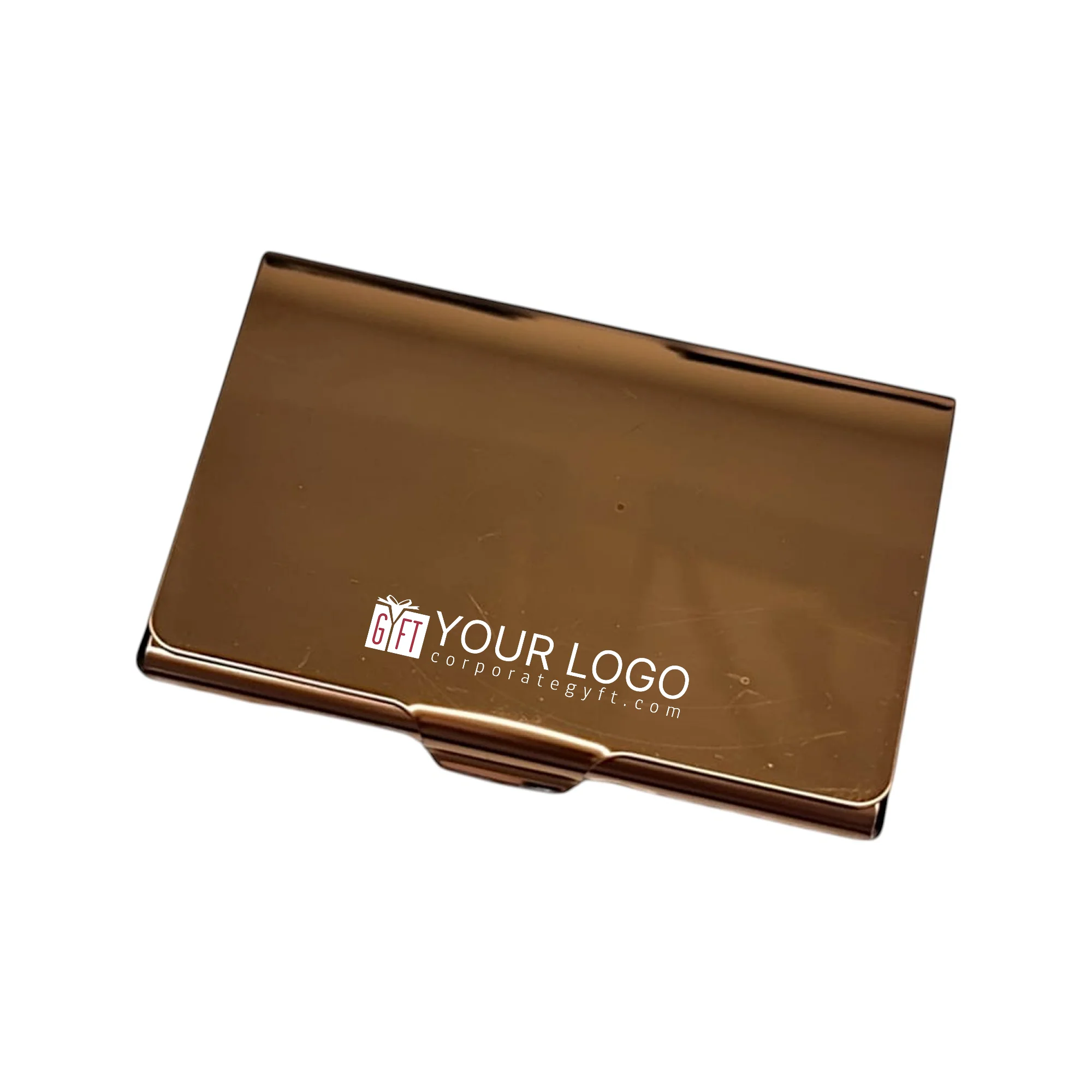 Featuring a premium brass metal finish with a smooth, polished design, this card holder adds a refined touch to professional essentials. Built to hold business and credit cards, it offers an open view layout for easy access during daily use. Its classic look makes it ideal for executive gifting sets, formal client appreciation, and premium onboarding hampers. Space is included for custom branding to enhance corporate recognition.