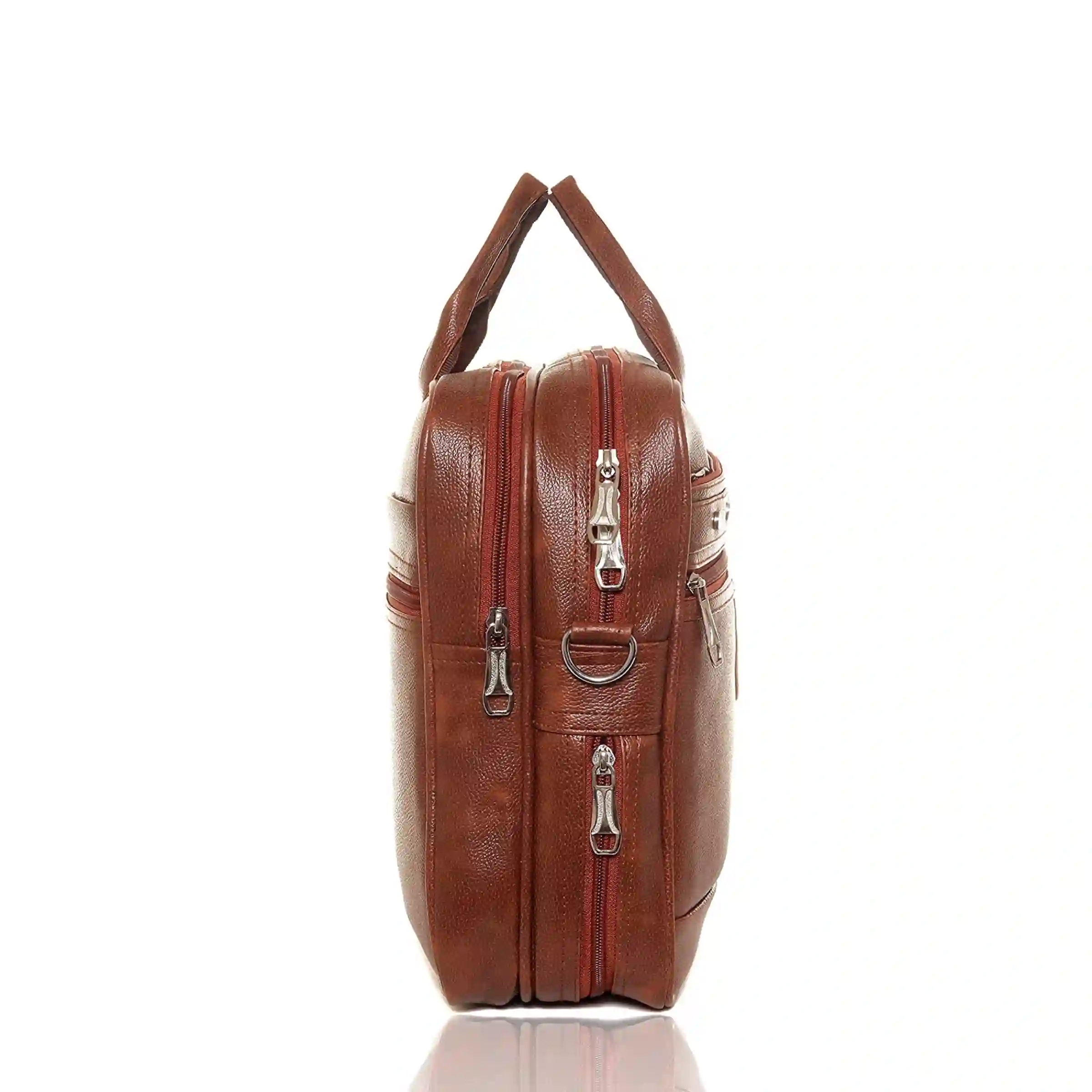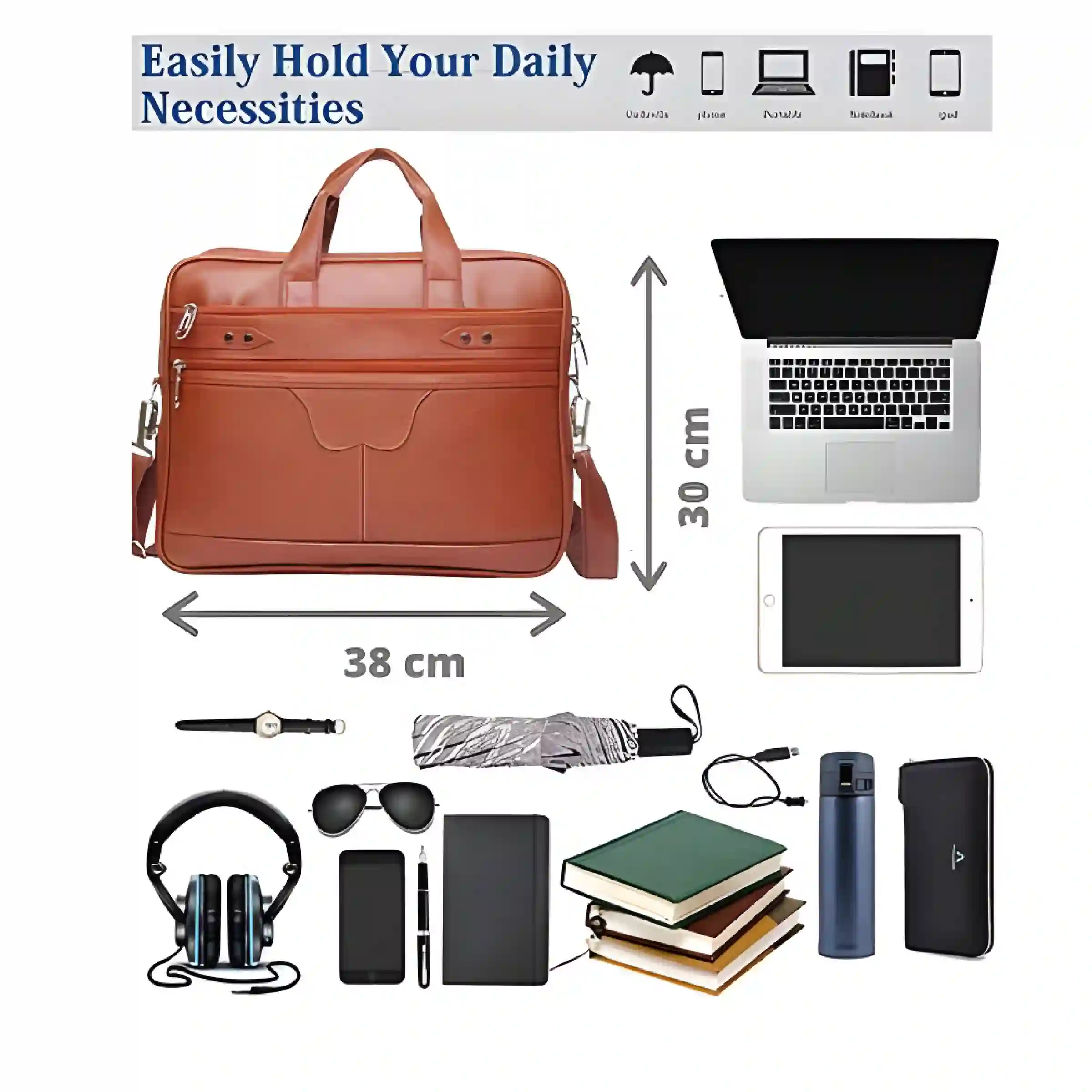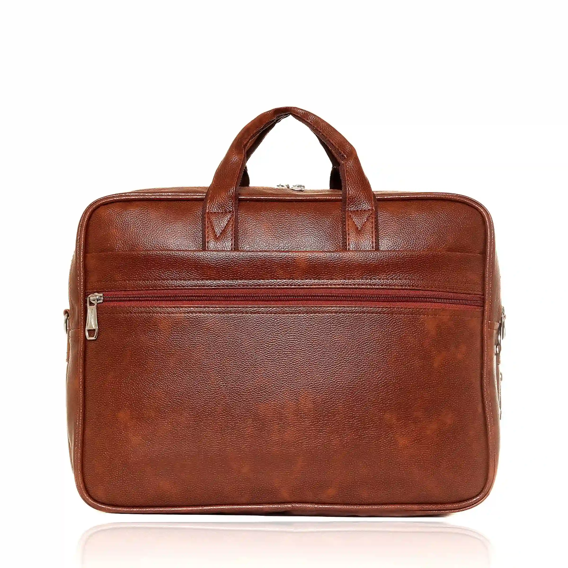 The unisex tan textured laptop bag combines style, functionality, and durability, making it an ideal companion for professionals, students, and travellers. Crafted from high-quality textured tan material, it exudes sophistication while protecting your laptop and essentials. The bag features a padded sleeve that fits laptops up to 16 inches, ensuring safety against bumps and scratches. Its spacious main compartment accommodates notebooks, documents, and chargers, while multiple organizer pockets, including a front zip pocket and back slip pocket, keep belongings neatly arranged. With a sturdy top handle and an adjustable shoulder strap, it offers comfortable and versatile carrying options for everyday use or travel, blending fashion with practicality.