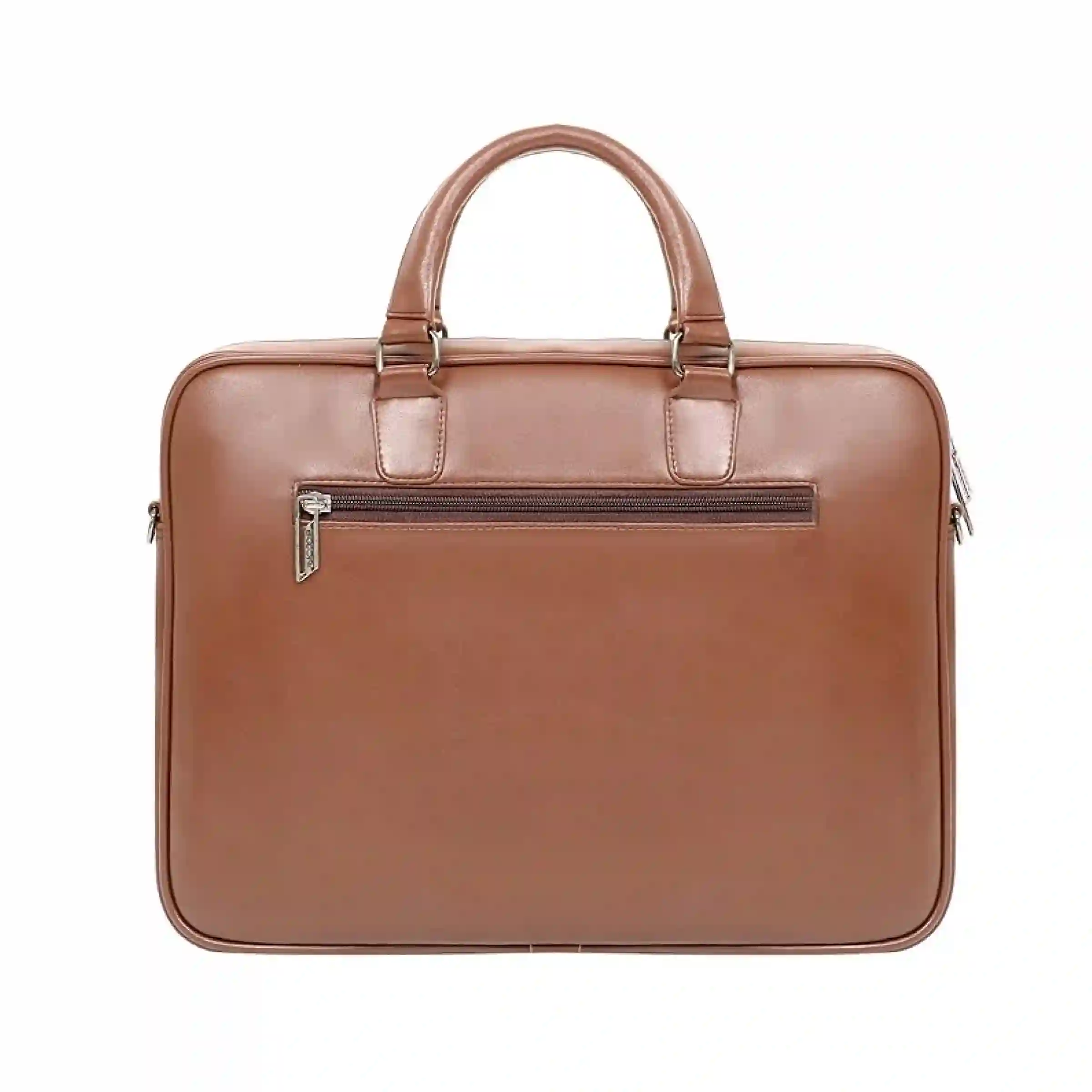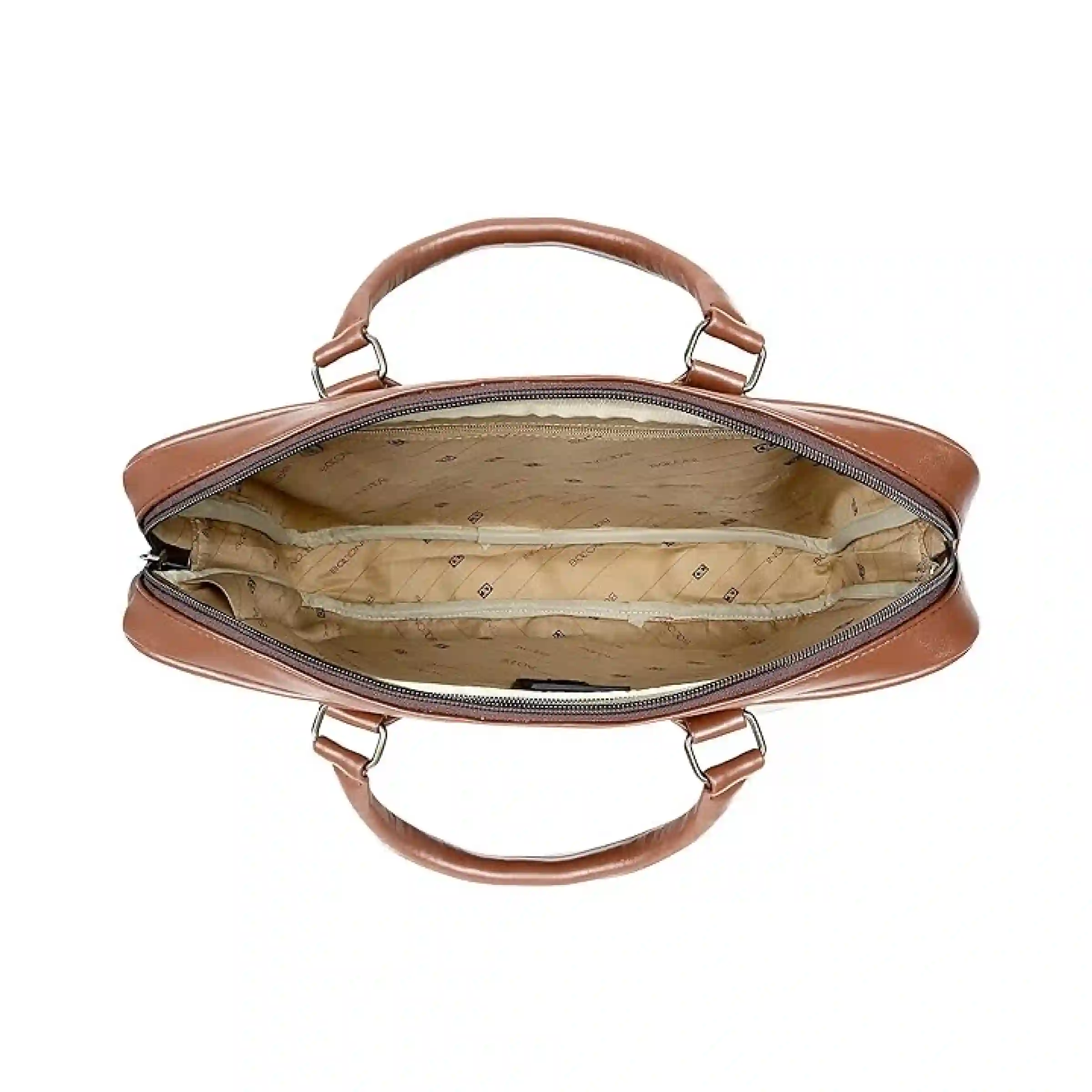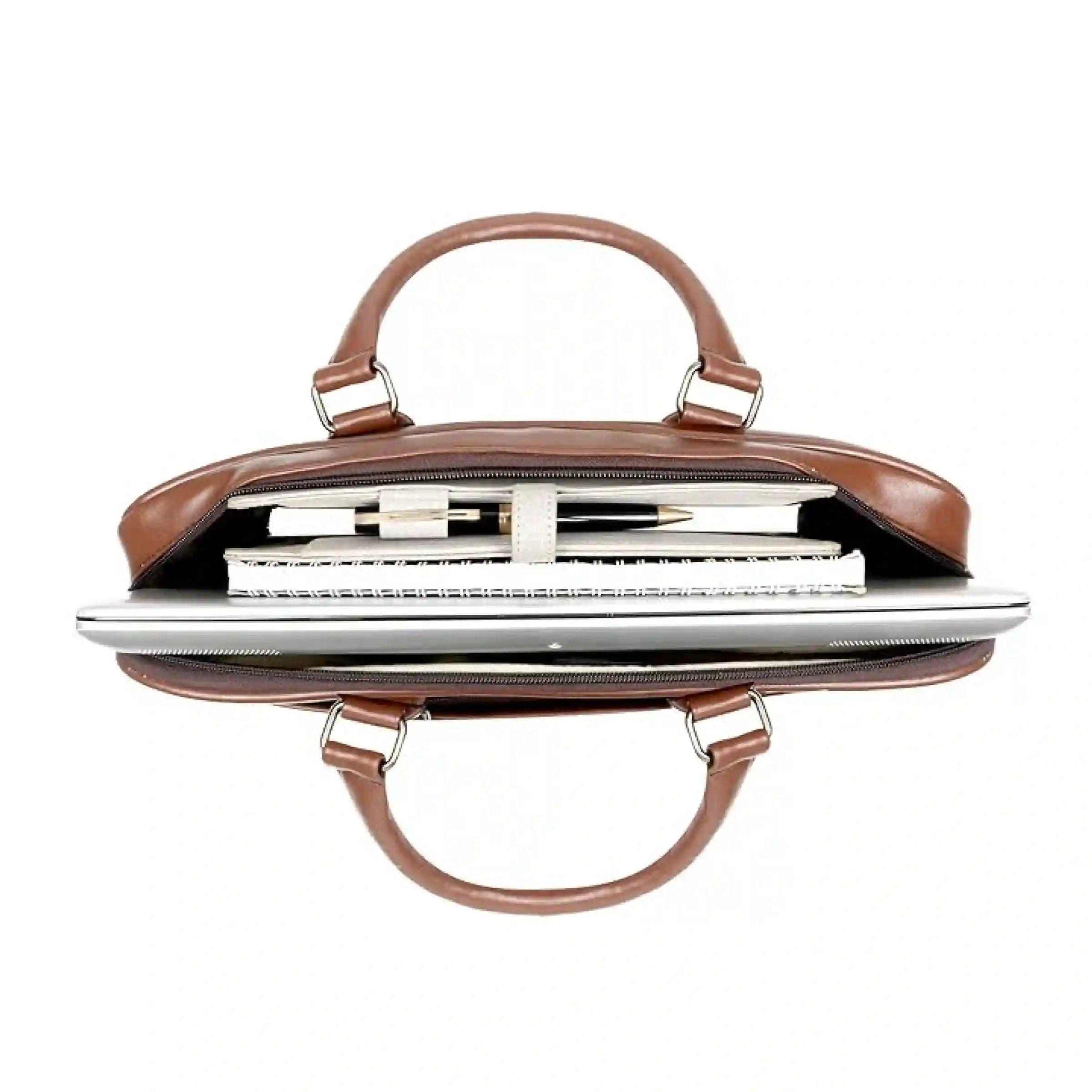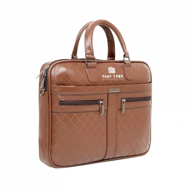 Stylish and functional laptop bag crafted from premium faux leather. It features a sleek quilted design with dual top handles and a detachable cross-body strap for versatile use. The bag includes a spacious main compartment and two front zippered pockets, offering ample space for your laptop, documents, and daily essentials, perfect for work or business occasions.