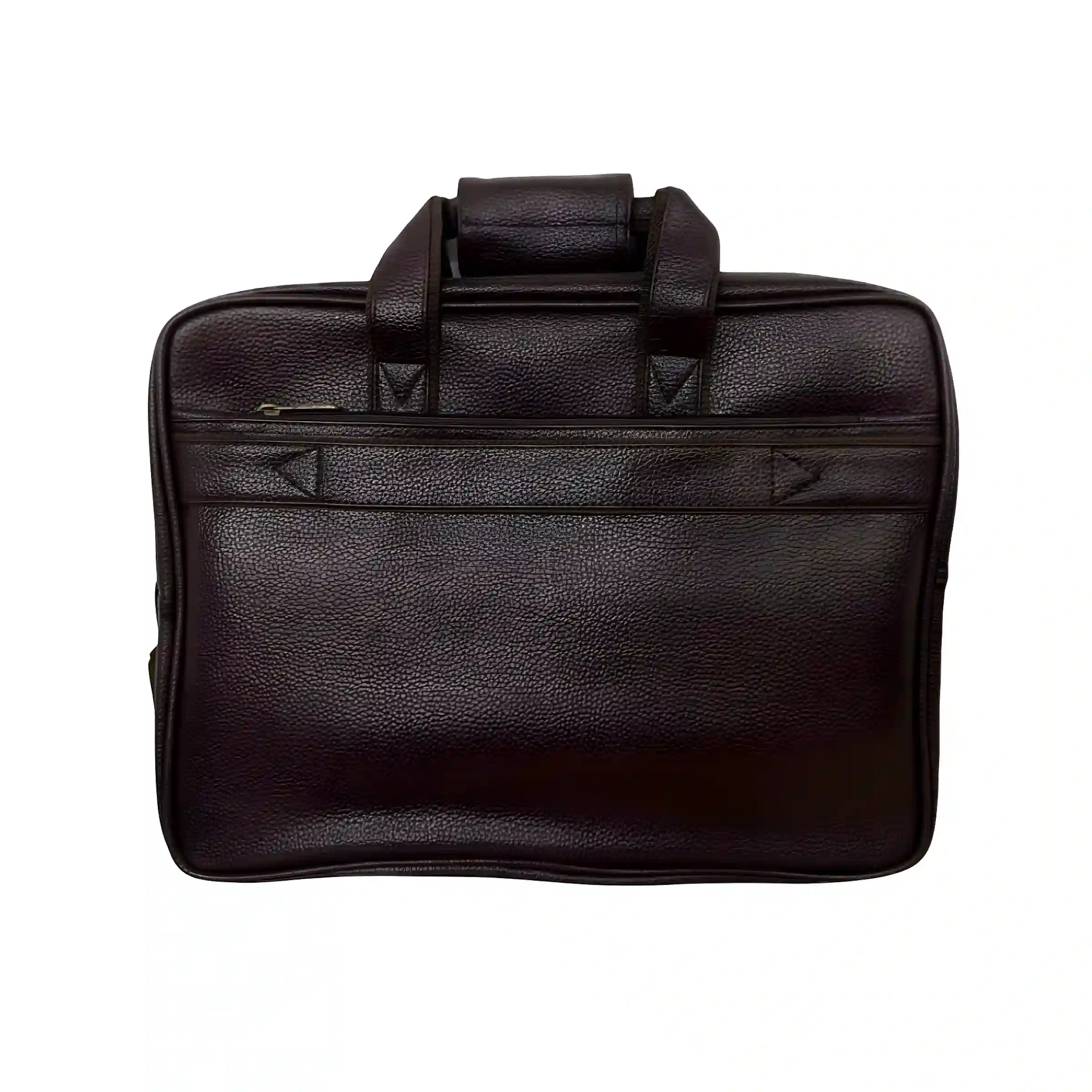 This briefcase-style laptop bag is crafted from high-quality leatherette, combining durability with a professional look. It features dual top handles and a detachable shoulder strap for versatile carrying options. The bag includes multiple pockets and compartments to organize files, notepads, chargers, and personal accessories efficiently. With a secure zipper closure and a practical, commuter-friendly design, it is perfect for daily office use, business meetings, and travel.