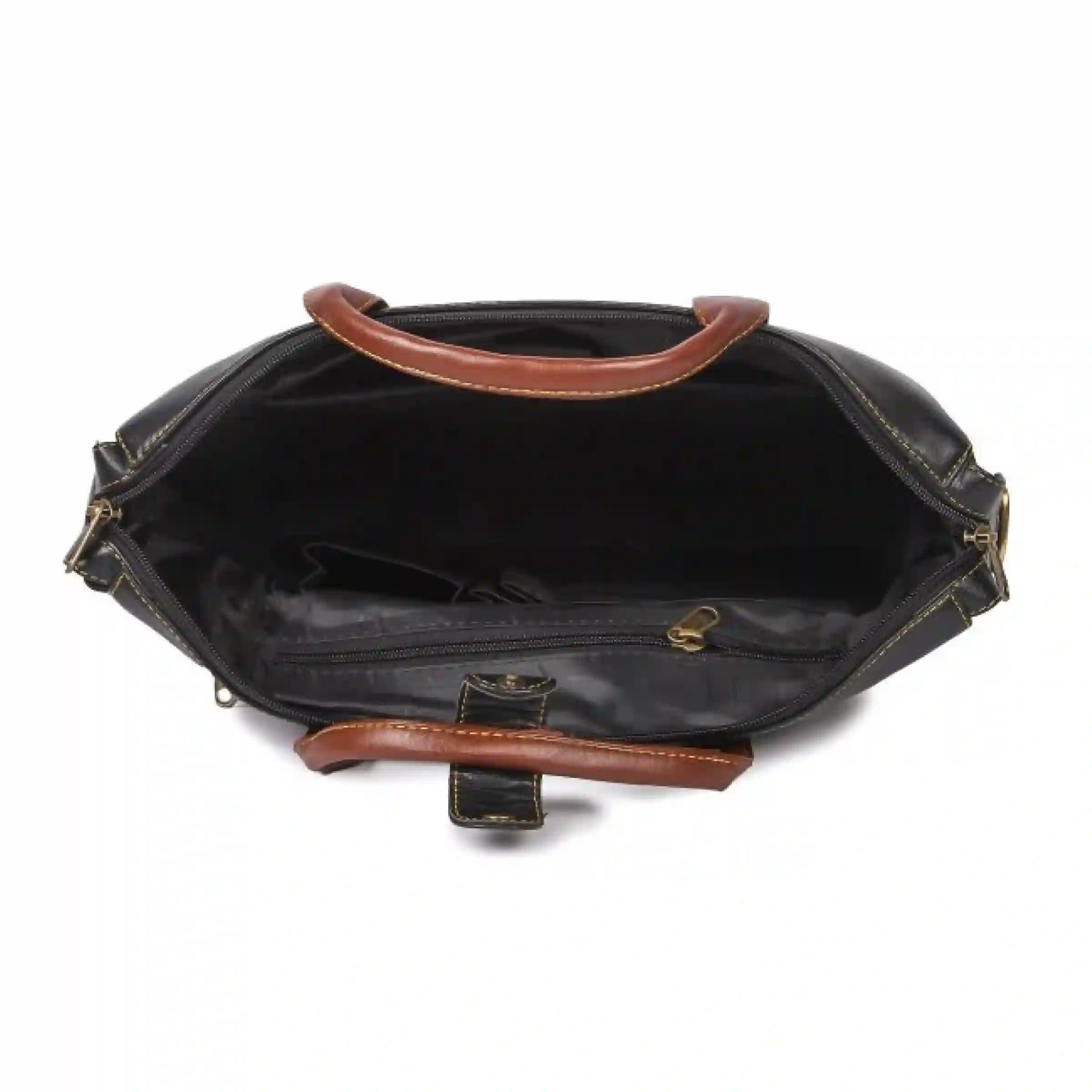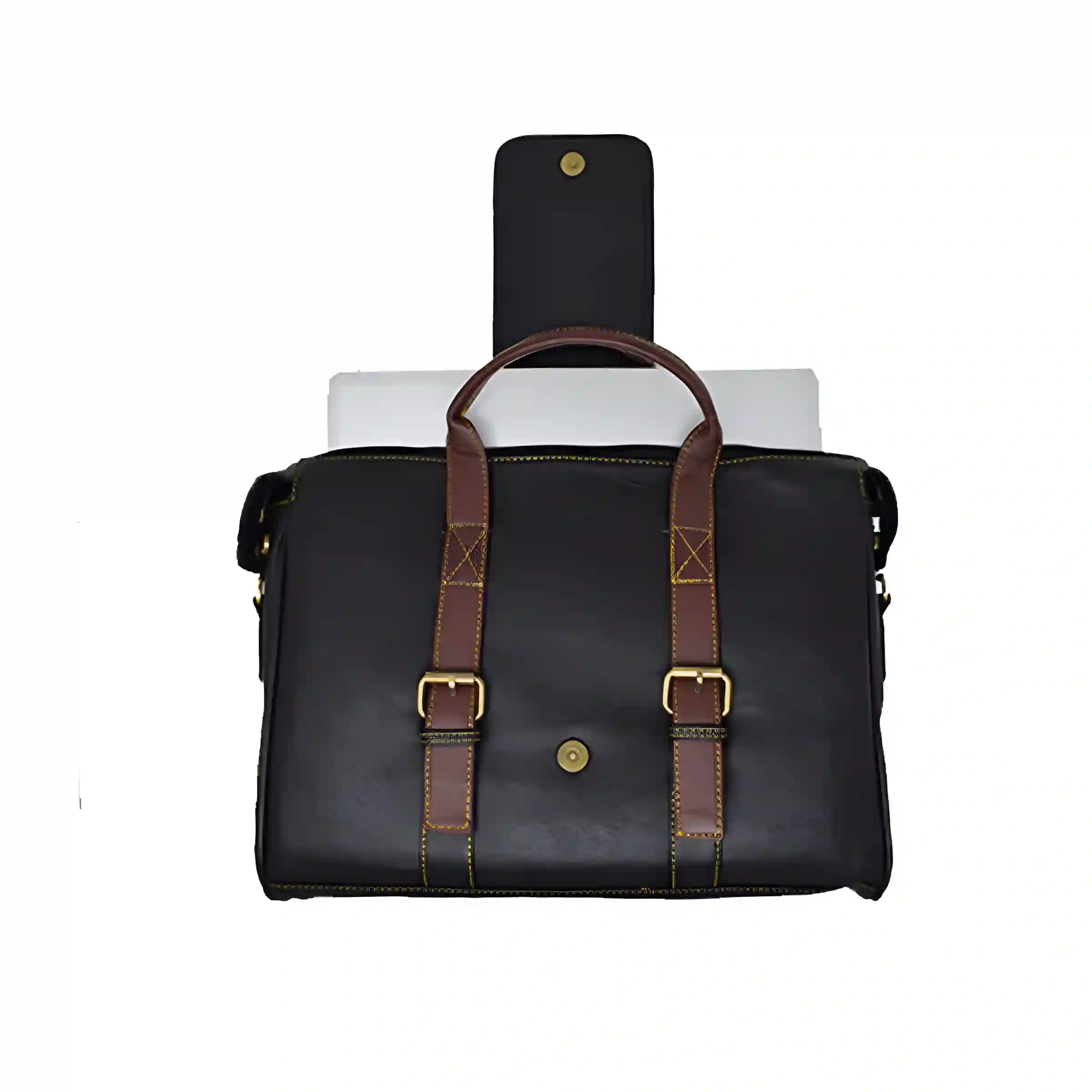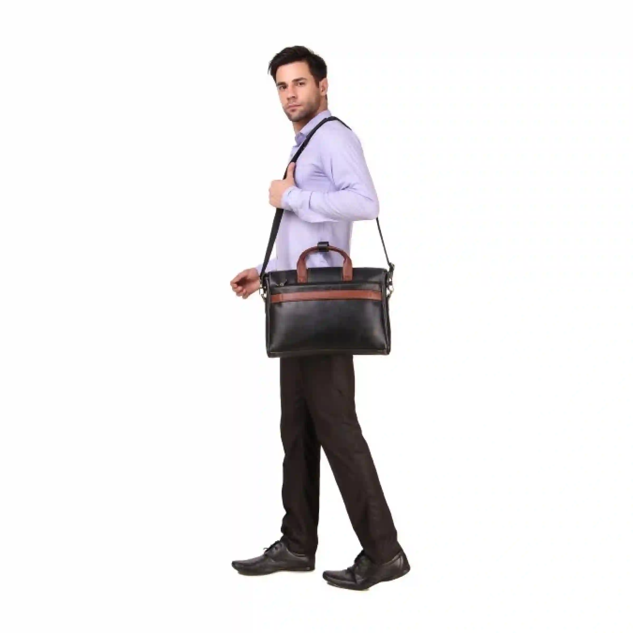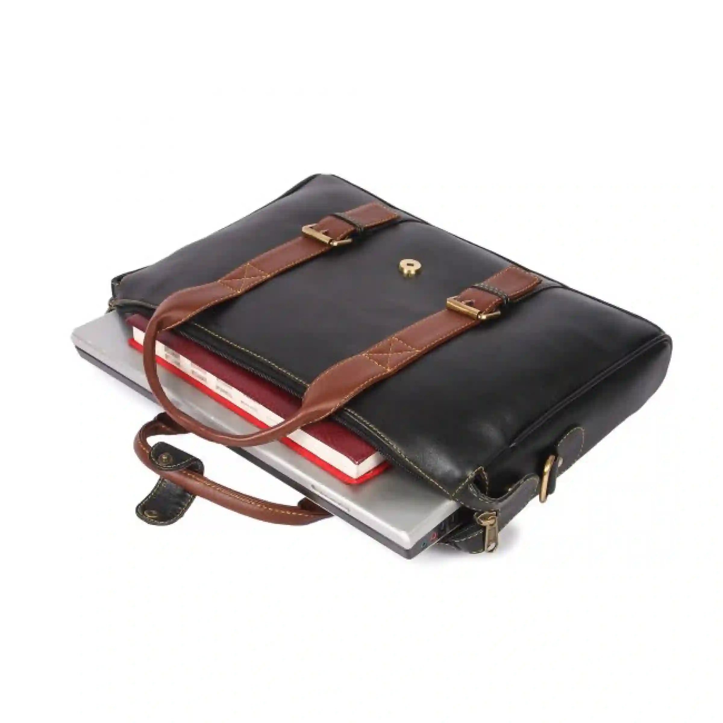 Premium vegan leather executive bag with a cushioned laptop sleeve and versatile carry options