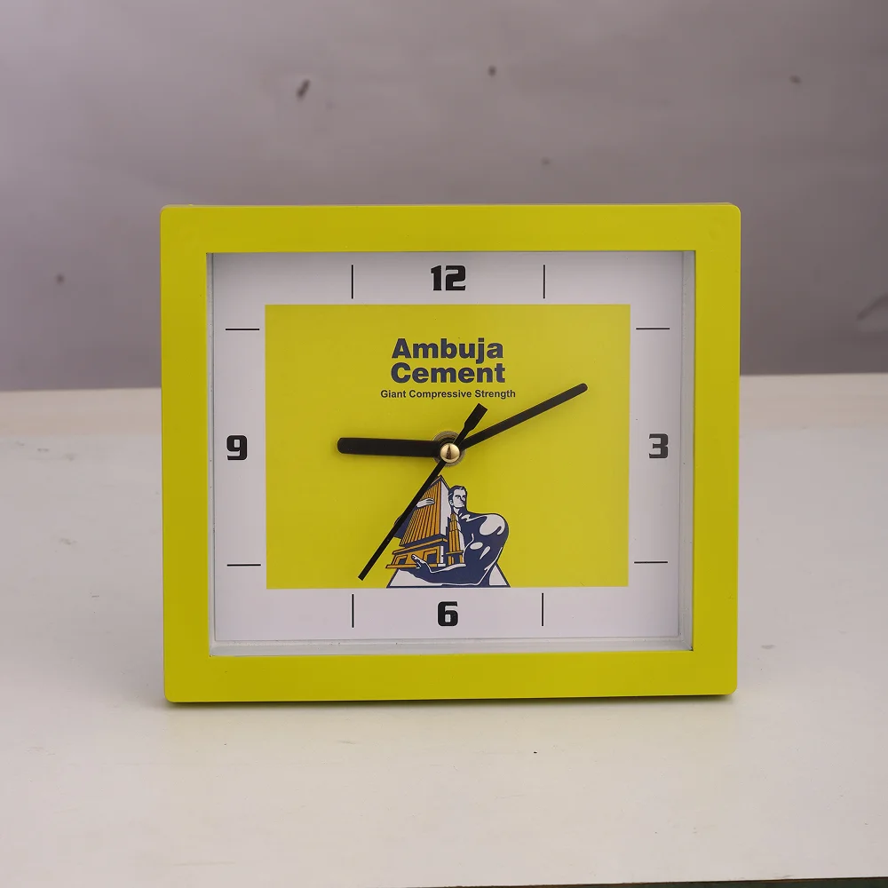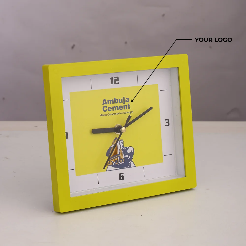 Versatile table-cum-wall clock designed in a compact 7×6-inch frame, offering flexible placement for desks, cabins and homework areas. A clear 5×6-inch dial ensures easy readability, supported by a clean layout suited for both personal and professional spaces. Lightweight construction with a 290 gms gross weight and 235 gms net weight makes it convenient to mount or position without hassle. Powered by a single AA battery, the clock delivers reliable performance throughout daily use. Generous branding space allows custom logo printing, making it an excellent pick for corporate gifting and welcome kits. A functional, stylish addition that enhances any workspace setup.