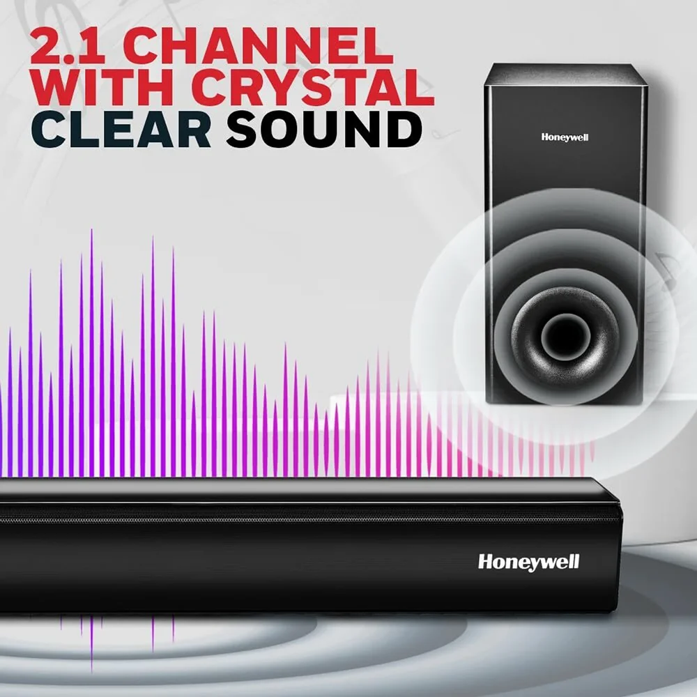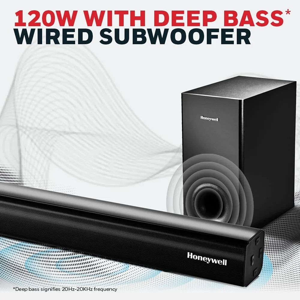Designed to deliver a powerful and immersive audio experience, this 120 W wireless soundbar with subwoofer brings theatre-like sound right into your space. Featuring a 2.1 channel setup with four 50.8 mm drivers and a robust 165.1 mm subwoofer, it ensures deep bass and crystal-clear audio for movies, music, and gaming. Seamless Bluetooth V5.0+EDR connectivity allows easy wireless streaming within a 10 m range, while multiple play modes including AUX, USB, Optical, and HDMI ARC offer versatile usage. The included remote control provides convenient access to settings, enhancing user experience. With its sleek black glossy finish and minimalist design, it complements modern interiors effortlessly. Built for both performance and style, it is ideal for everyday entertainment and professional setups alike.