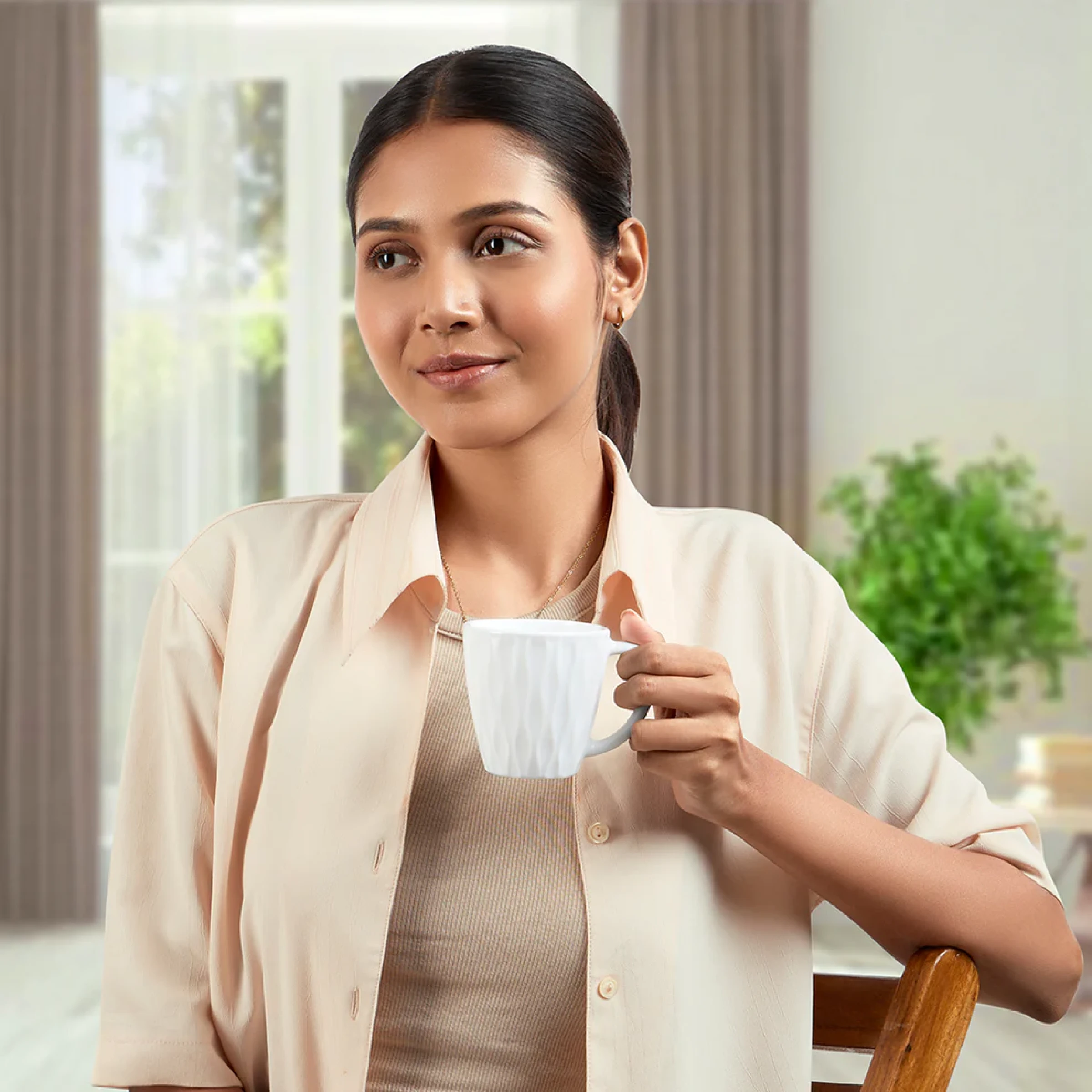 Elevate your drinkware collection with the Larah curl cup set, featuring six stylish opal glass cups with a distinctive spiral design. Perfect for coffee, tea, or any beverage, these cups blend creative aesthetics with everyday functionality. Made from toughened opal glass, they are durable, chip- and scratch-resistant, and easy to clean. Lightweight and hygienic, they make every sip enjoyable while adding charm to your table. Ideal for gifting or enhancing your own beverage experience with style and elegance.