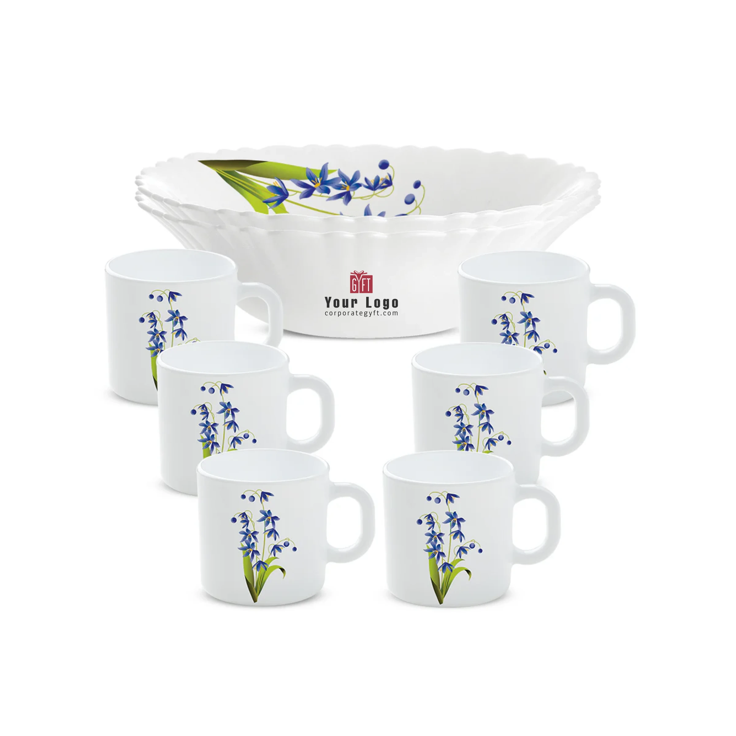 Elevate every snack time with the Larah Lavender Snack Set, featuring 4 bowls and 4 mugs crafted from toughened opal glass. Designed for durability, style, and practicality, these lightweight, chip- and scratch-resistant pieces are dishwasher and microwave safe. Perfect for serving chaat, bhel, or desserts, they bring charm to casual gatherings and festive occasions alike. Packaged elegantly, this set makes a thoughtful gift for friends, family, or colleagues, adding a touch of elegance to every table.