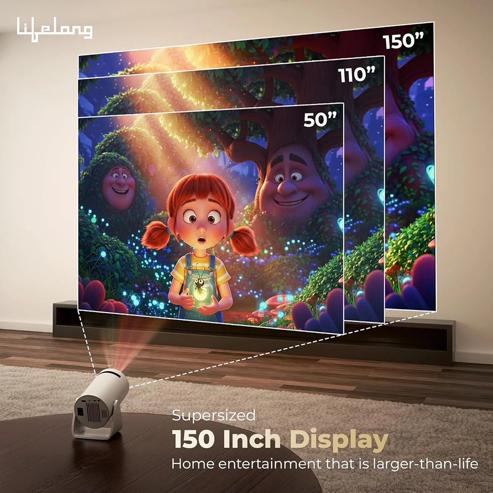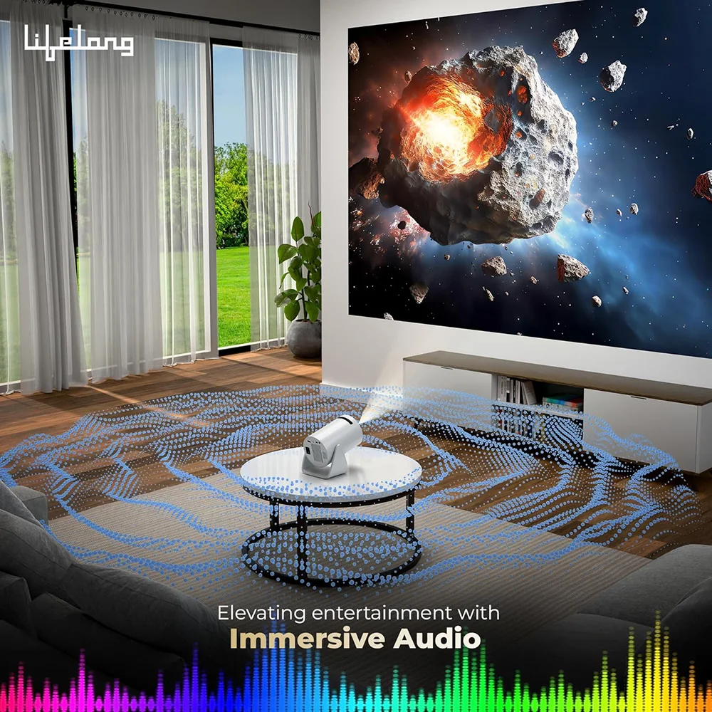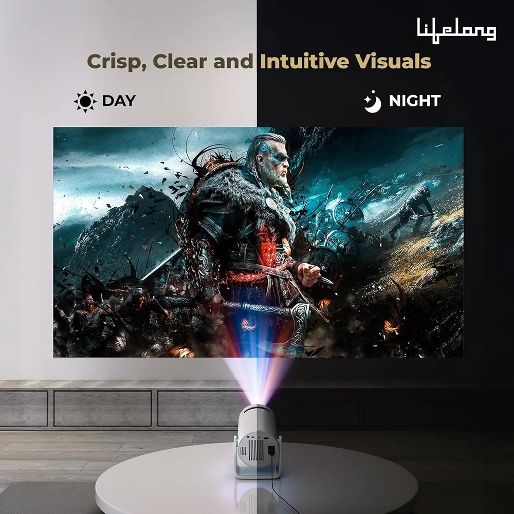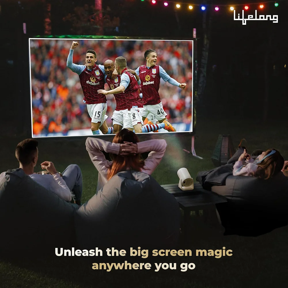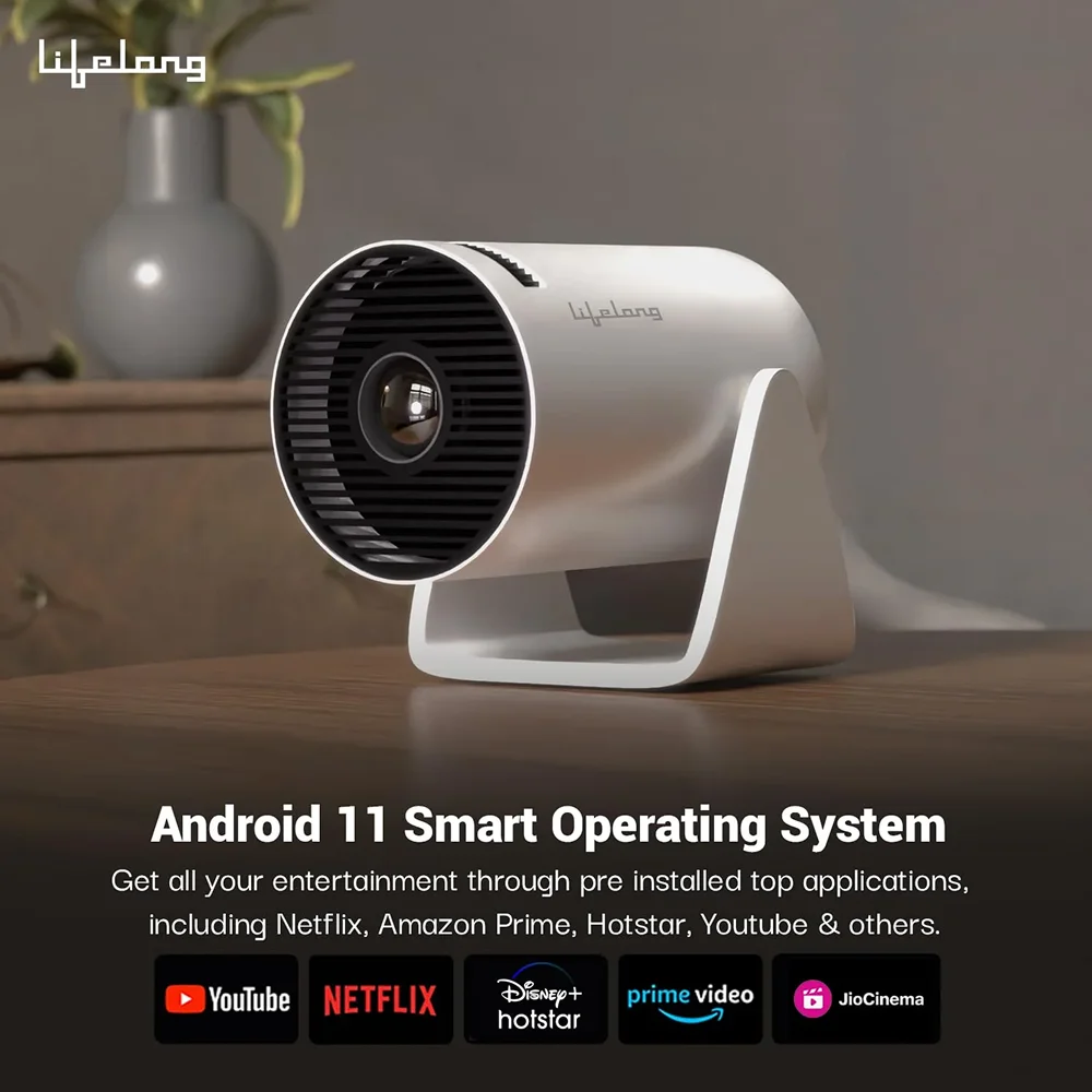 Lifelong light beam smart projector offers native 1080p resolution with 4k support, delivering sharp and vibrant visuals on screens up to 200 inches. with 3500 lumens brightness, it ensures clear projection even in well lit rooms. the 180° swivel design, auto keystone, and wireless screen mirroring make setup simple and flexible. powered by android 11, it comes preloaded with ott apps like netflix, prime video, and youtube for instant streaming. a 3w built in speaker provides clear audio, while wifi, bluetooth, hdmi, and usb connectivity make it versatile for movies, gaming, presentations, and events.