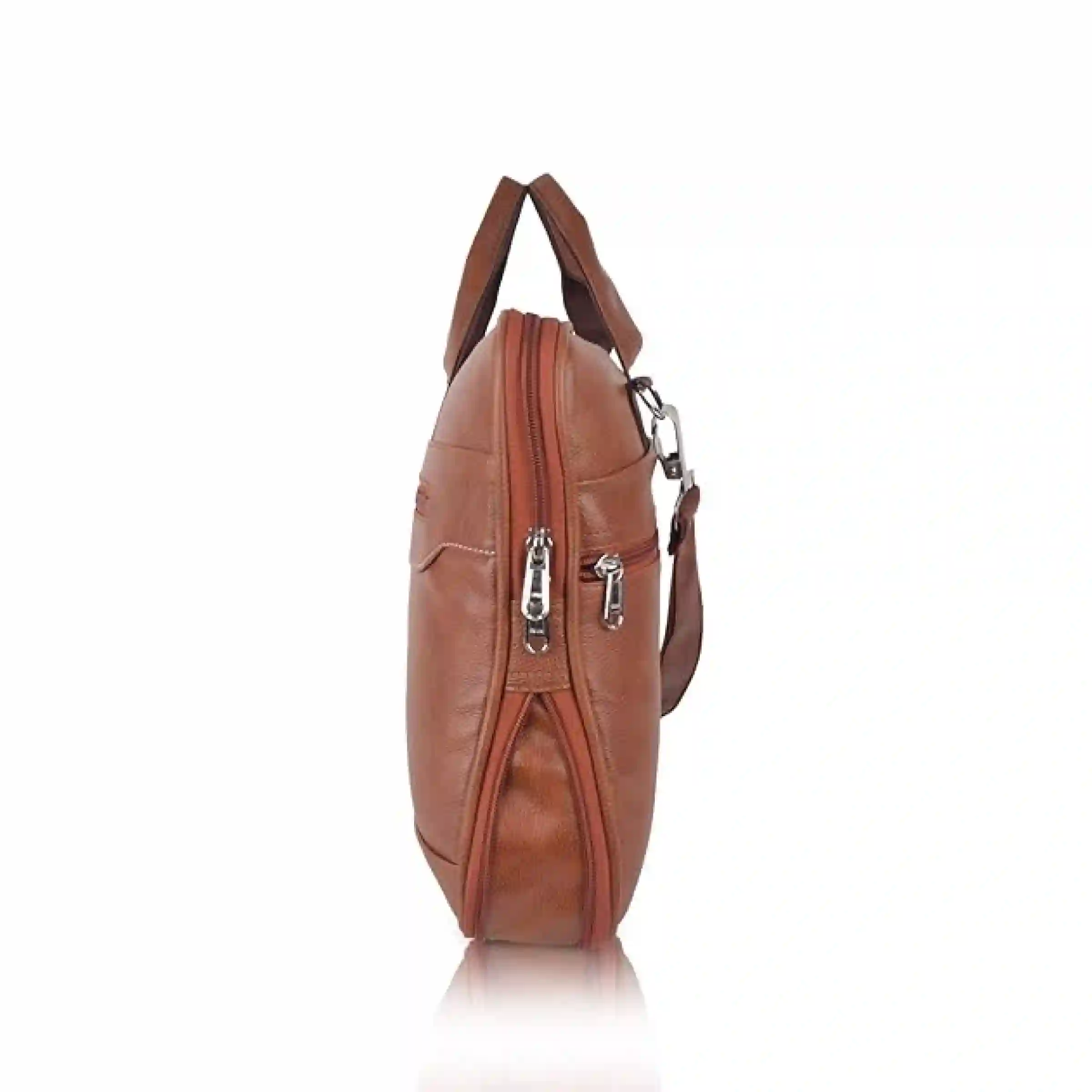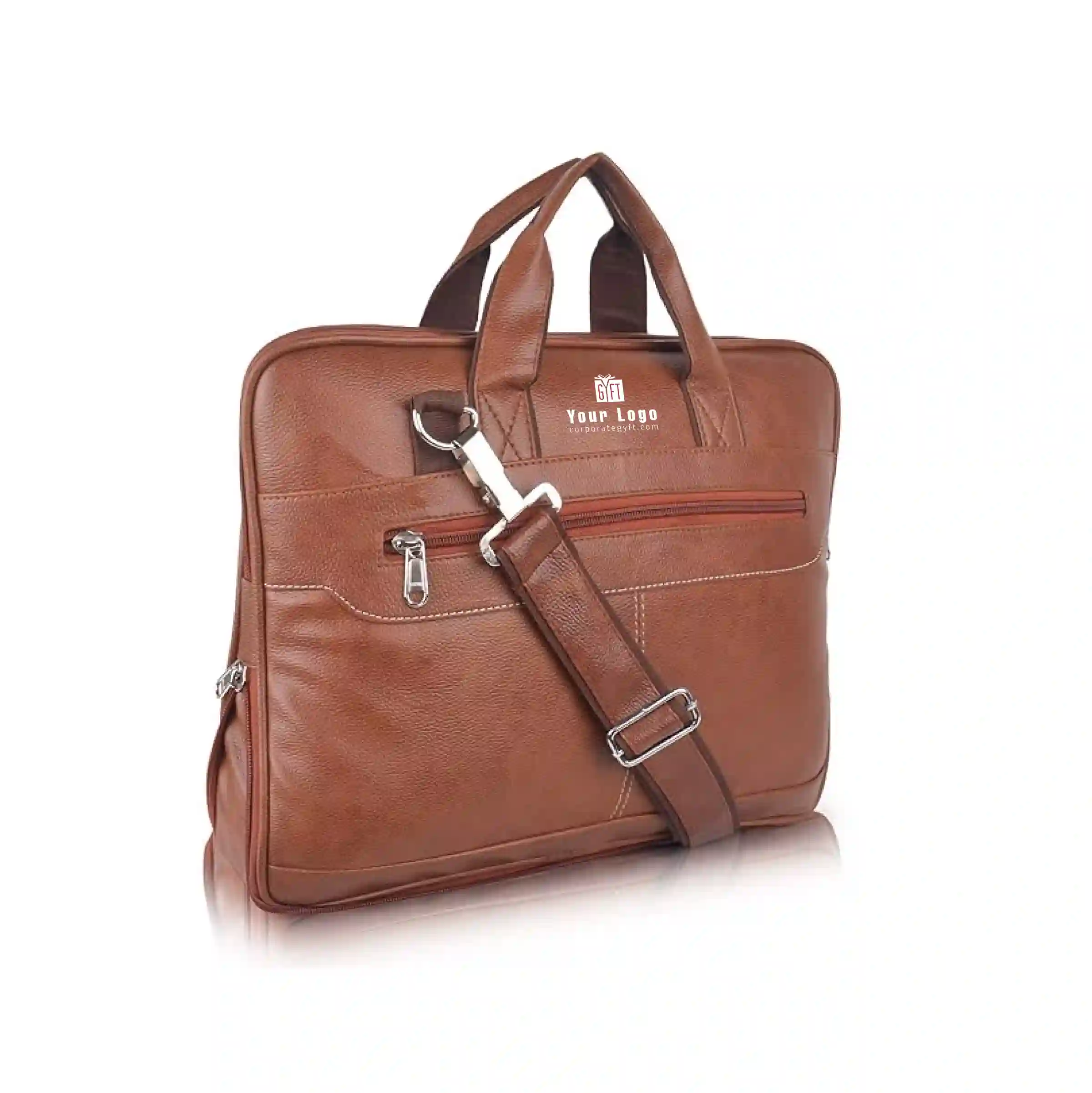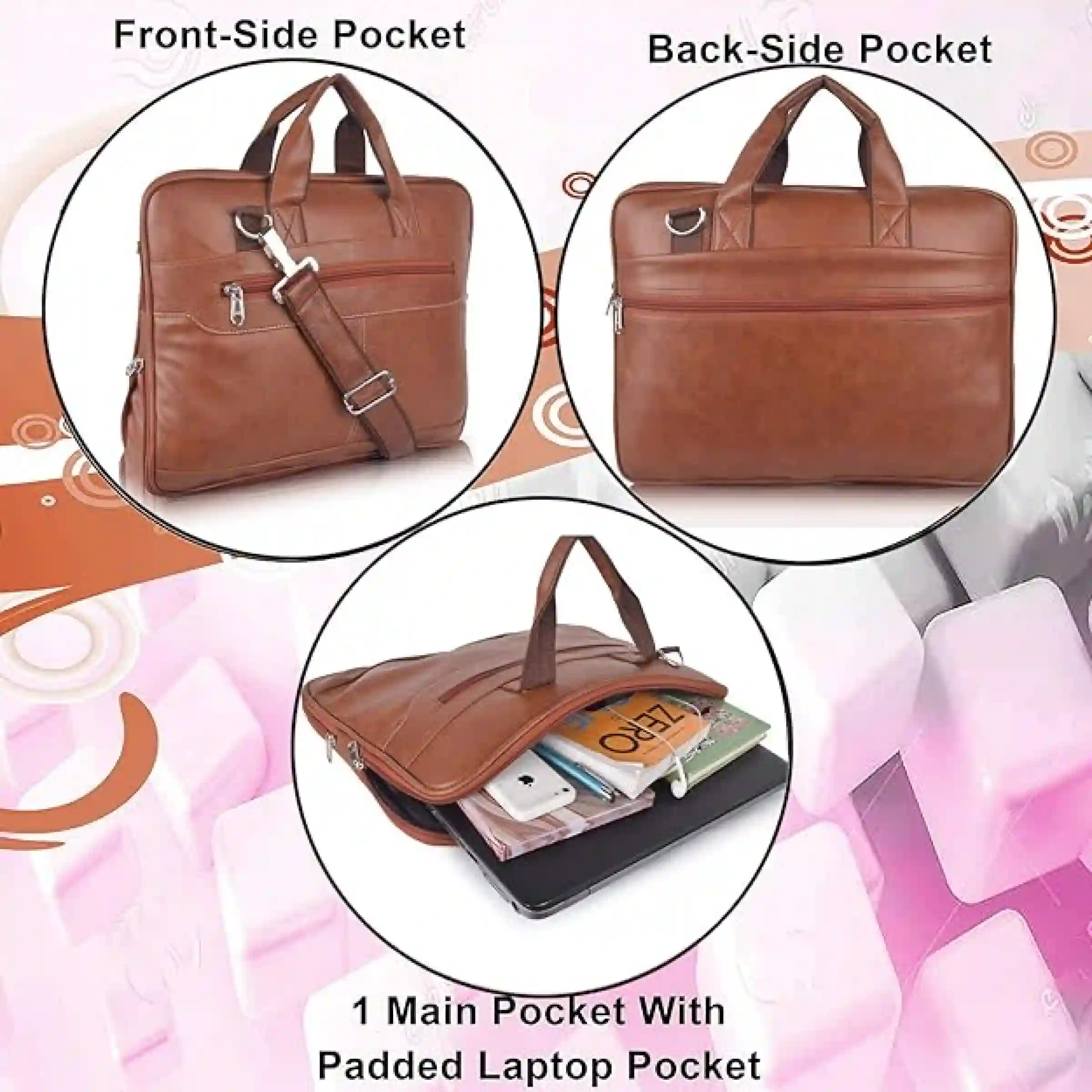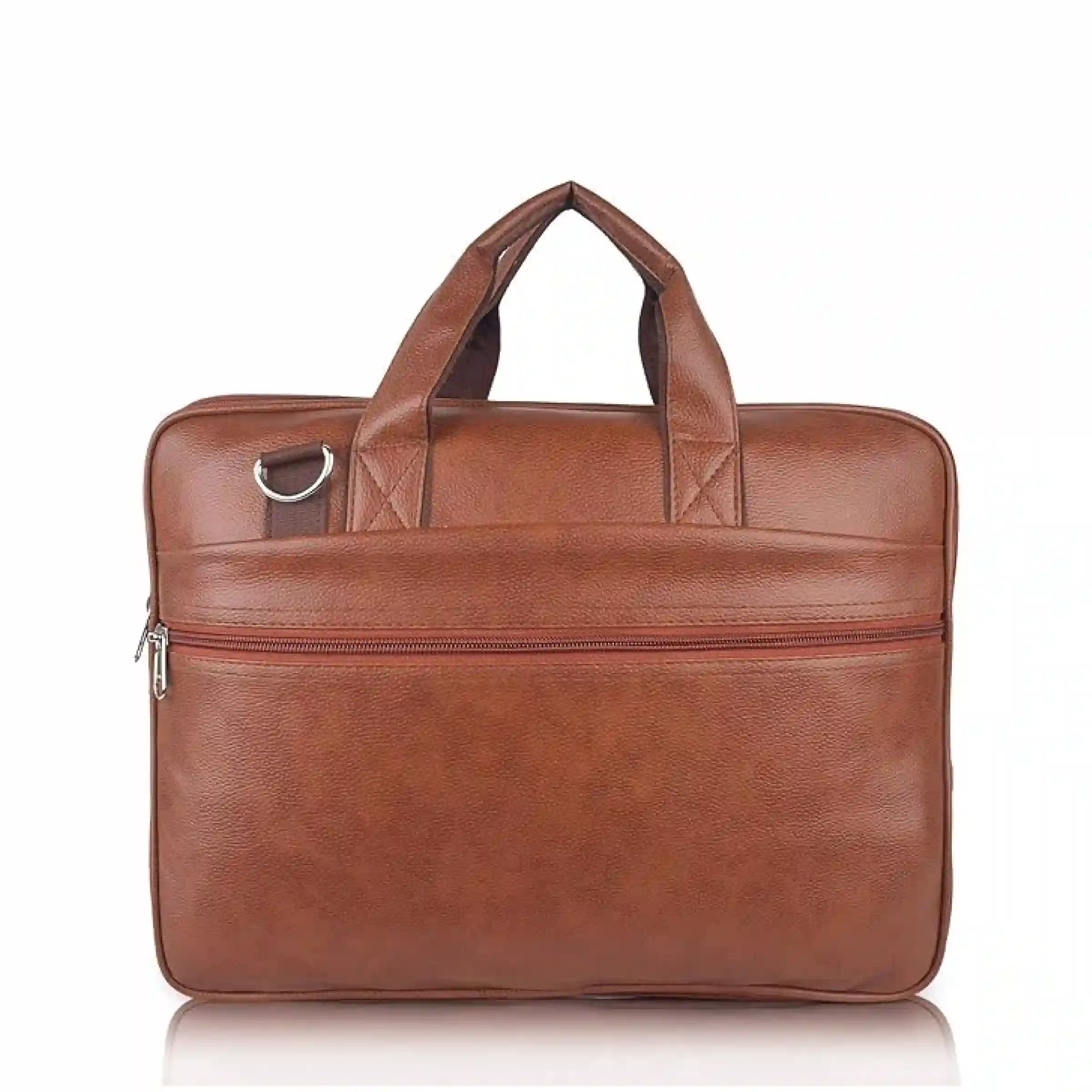This synthetic leather laptop bag combines style, durability, and functionality. It features a reinforced leather top handle and an adjustable, removable crossbody strap for versatile carrying. The spacious interior includes a padded laptop compartment, dedicated sections for tablets, phones, and accessories, along with zip and slip pockets for organized storage. A front and rear zip pocket adds extra security. Made with heavy-duty hardware, this lightweight bag is perfect for office, casual outings, or travel, keeping all your essentials safe and organized.