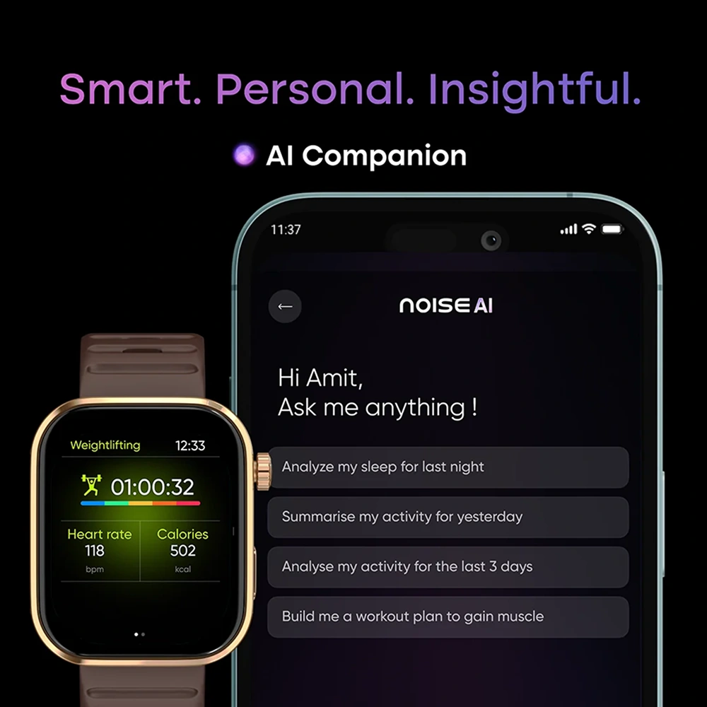 Precision meets performance in this Noise original merchandise smartwatch designed for modern professionals and active users. Powered by the advanced EN1 processor, it ensures smooth operation and responsive everyday use. Built-in GPS enables accurate outdoor activity tracking, making it reliable for fitness routines, walks, and travel. A functional crown paired with a 9-axis motion sensor enhances navigation and delivers precise movement detection. The large 1.96″ AMOLED display offers vibrant visuals, while AI companion support and dynamic watch faces add a smart, personalized experience. Custom logo and design printing space make it an excellent choice for premium corporate gifting, professional use, outdoor activities, and daily wear.