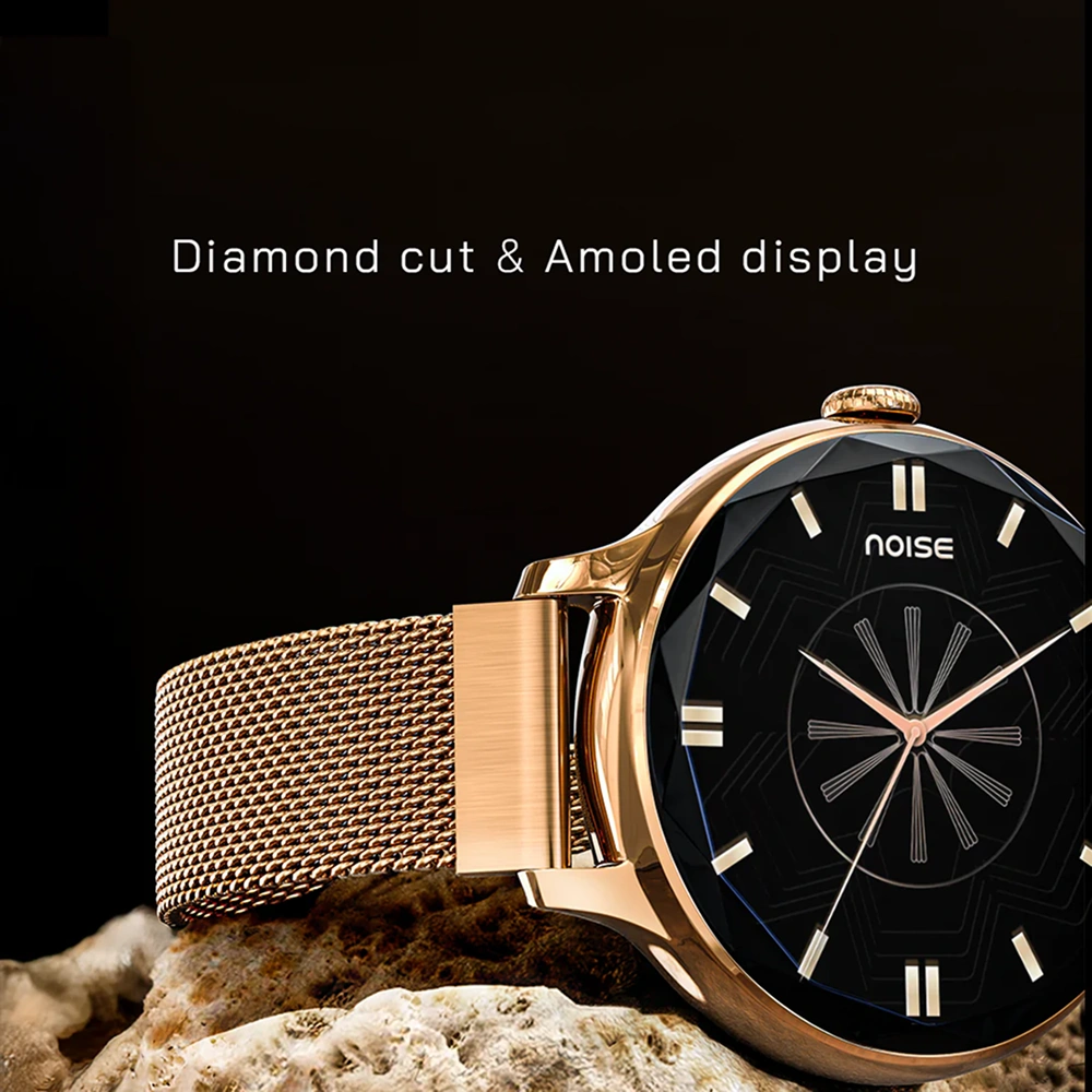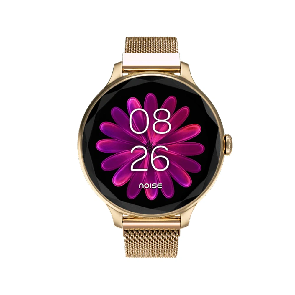 The Noise smartwatch features a stylish metallic build with a premium diamond-cut dial, designed to complement modern fashion while delivering smart functionality. Equipped with a vivid 1.1″ AMOLED display and 100+ customizable watch faces, it offers a personalized and elegant viewing experience. The smartwatch supports Bluetooth calling with an integrated dial pad, making hands-free communication convenient, while the AI voice assistant adds everyday ease through quick voice commands. Designed with wellness in mind, it includes a female cycle tracker for better health monitoring. With space available for custom logo and design printing, this smartwatch is an excellent choice for women, daily wear, fashion lovers, and corporate gifting.