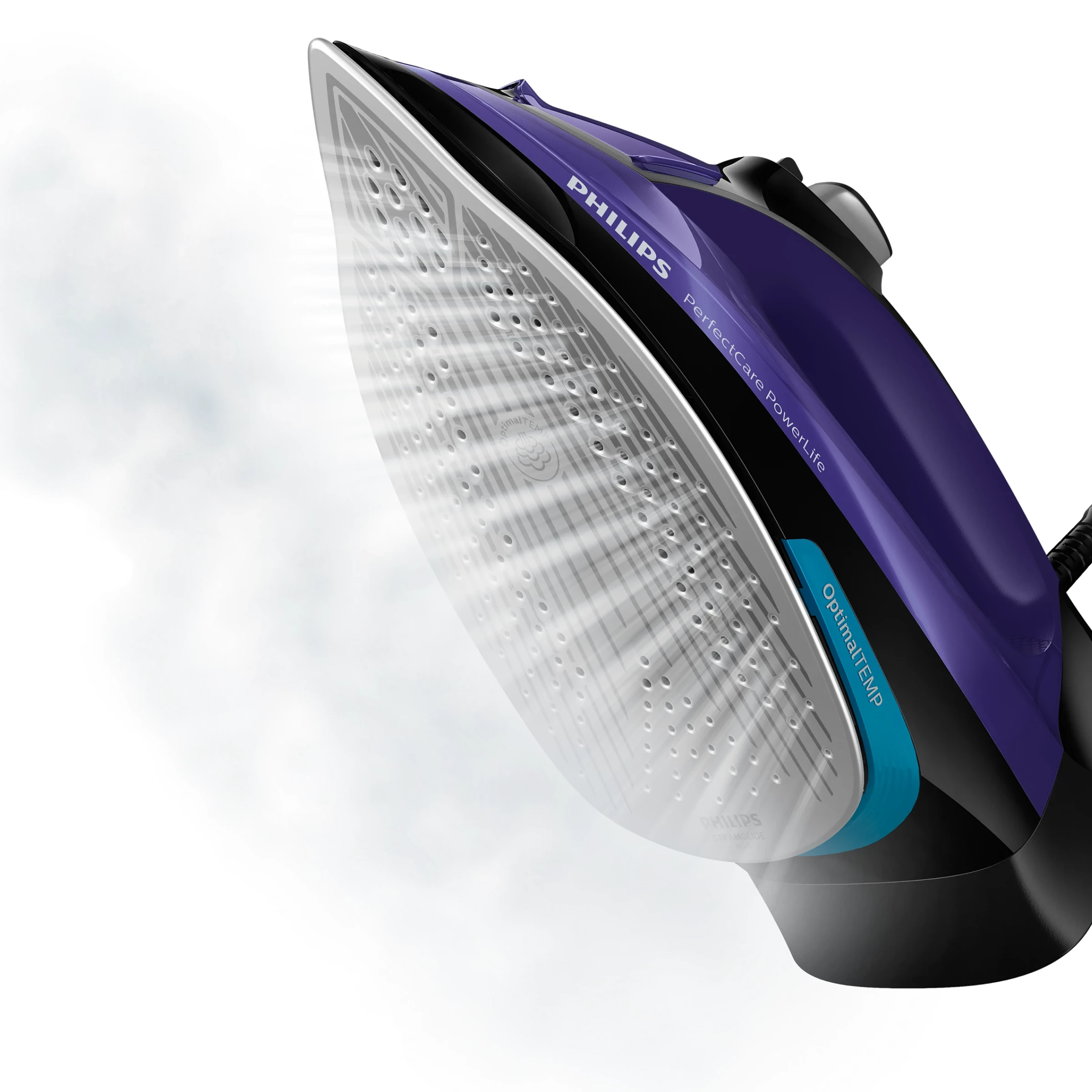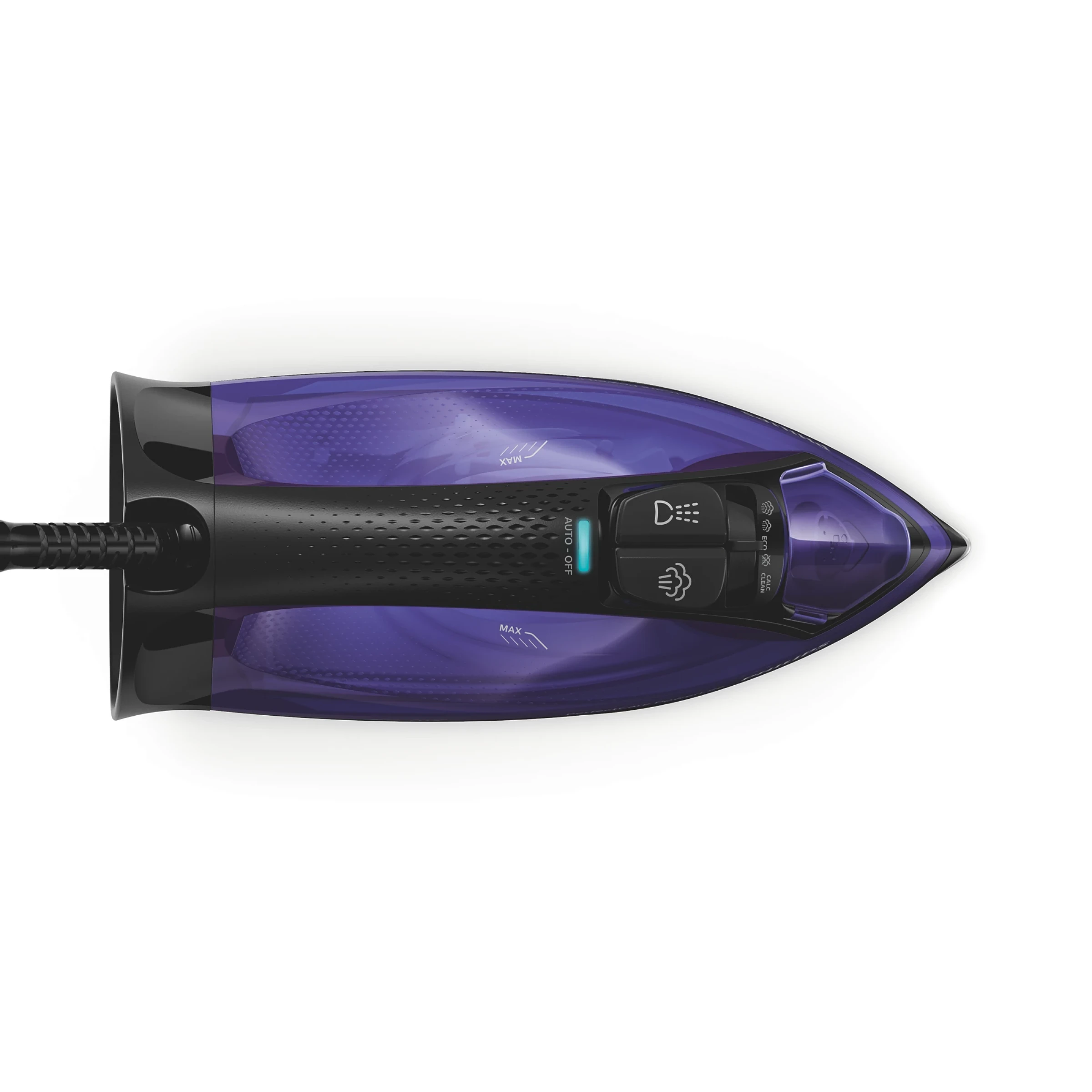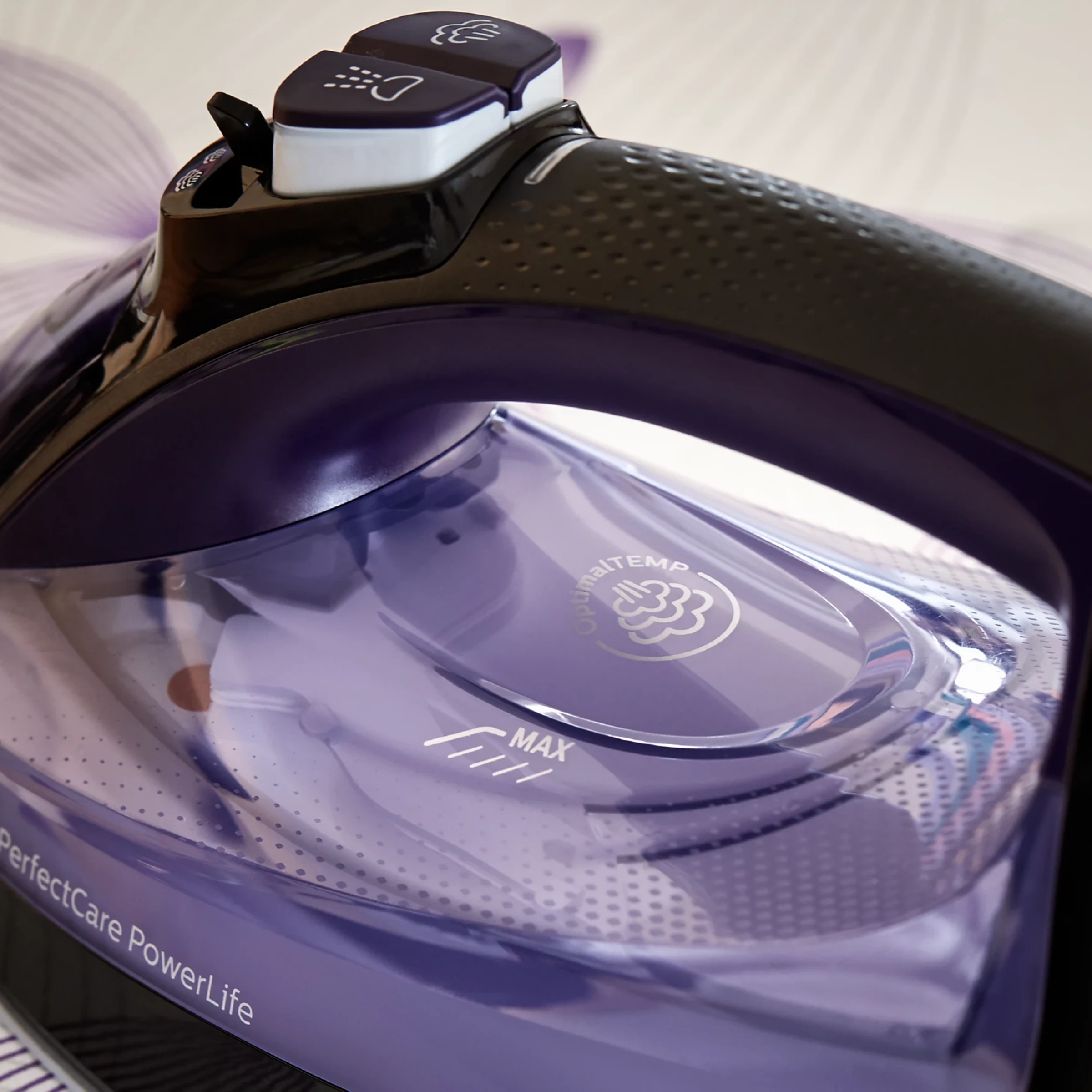 The Philips perfectcare steam iron delivers powerful 2400W fast heating for quick and efficient ironing. Thanks to OptimalTEMP technology, it requires no temperature adjustments and is safe on all fabrics—from delicate silks to sturdy jeans. Its SteamGlide Plus soleplate ensures smooth, scratch-resistant gliding, while the large water tank and drip-stop system make ironing hassle-free. With automatic shut-off and an extra stable heel rest, it offers both safety and convenience for everyday use.