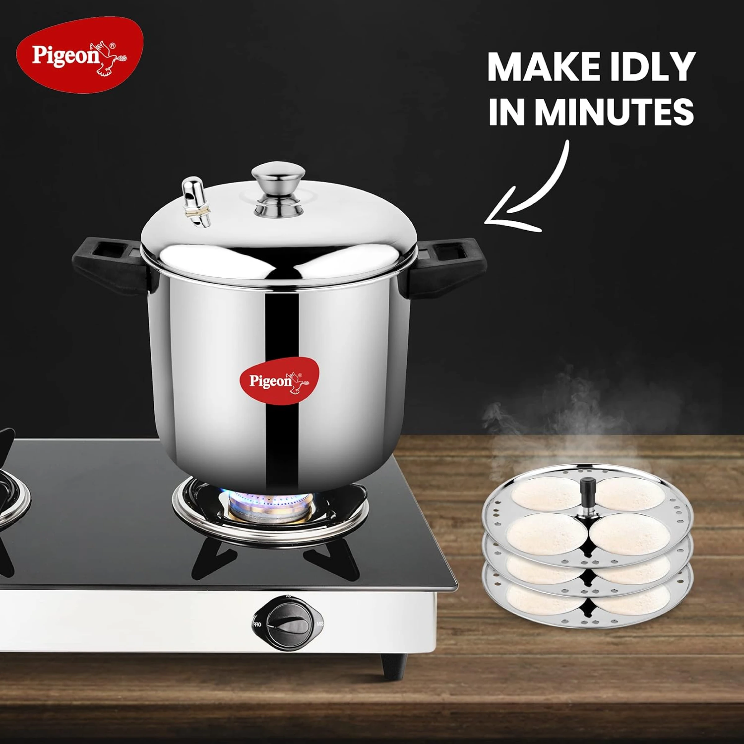 Designed for convenient and efficient cooking, this stainless steel idli maker by Pigeon is a reliable addition to everyday kitchens. Built with durable and rust-resistant material, it ensures long-lasting performance while maintaining hygiene and ease of use. The thoughtfully designed plates allow multiple idlis to be prepared in one batch, saving time and effort during meal preparation. Equipped with sturdy handles for a secure grip and an easy-to-carry holder, it offers safe and comfortable handling. The built-in whistle adds to its functionality, making the cooking process simple and controlled. Compatible with both induction and gas stoves, it fits seamlessly into modern kitchens. Easy to clean and maintain, this idli maker is ideal for regular use and also serves as a practical choice for corporate gifting, employee kits, and festive kitchen hampers.