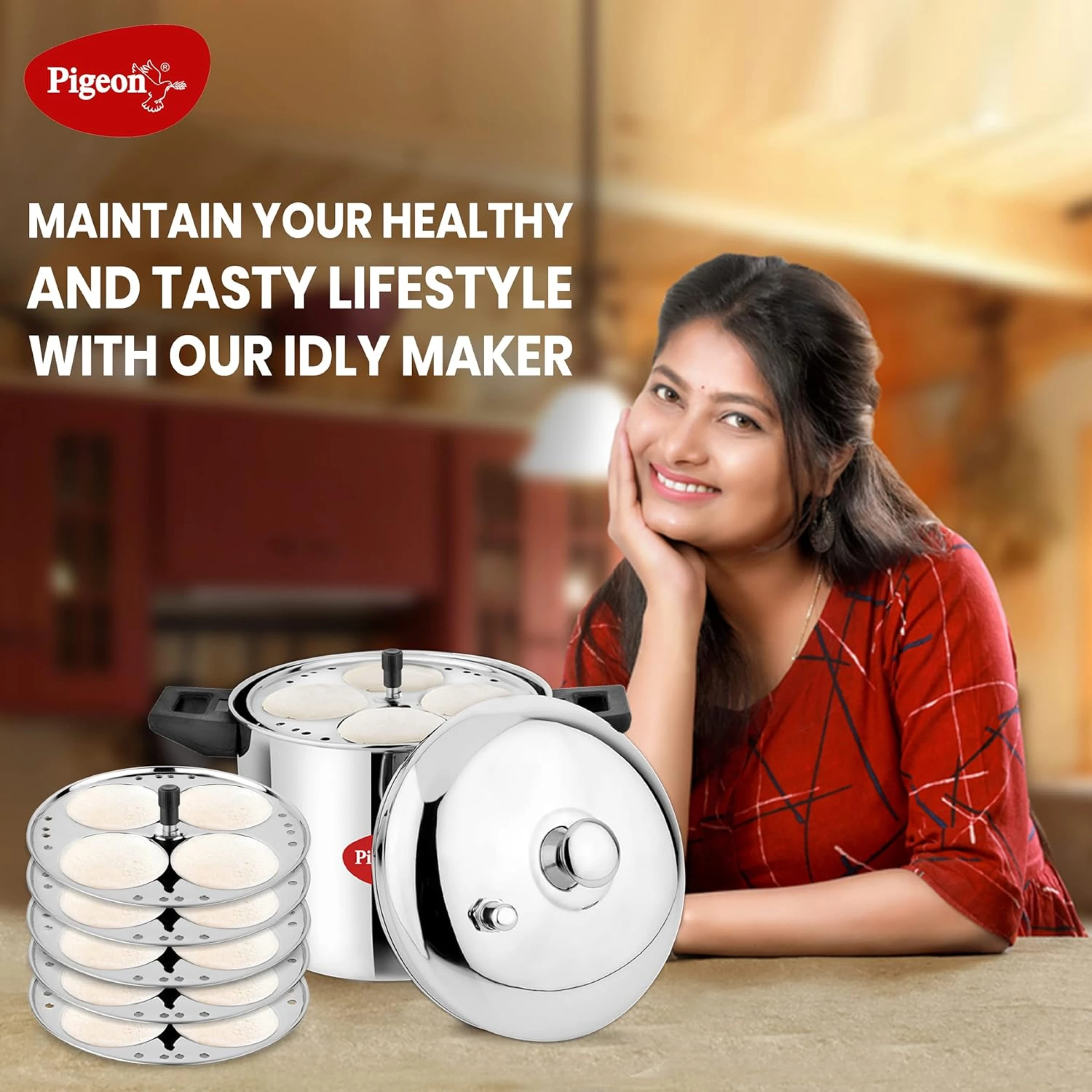 Pigeon Stainless Steel Idli Maker with 6 Plates