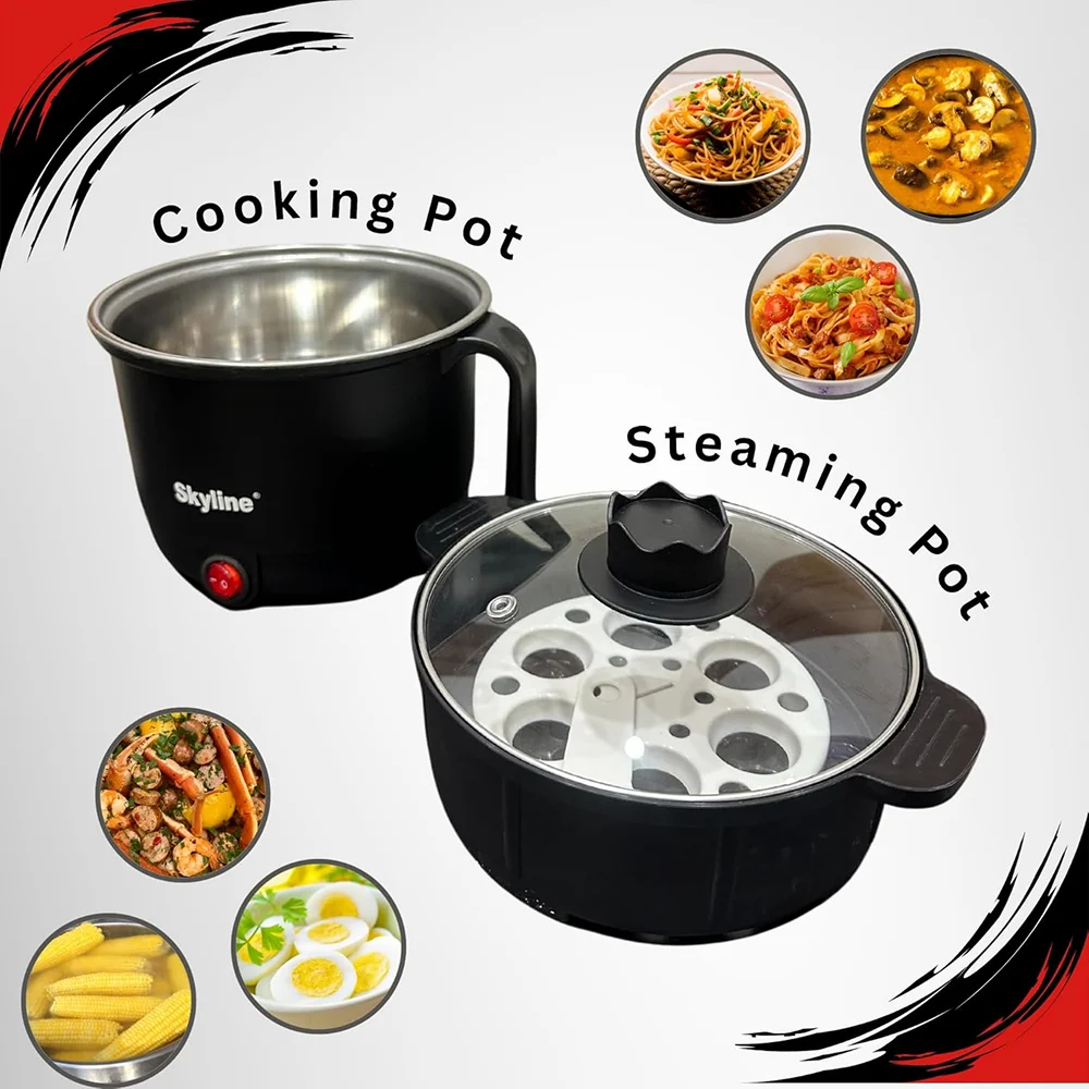 The Skyline 1.5L multi-kettle with steamer and egg attachment is a versatile kitchen appliance designed for quick and efficient cooking. With 600W power and a durable stainless steel body, it can handle small to medium batches with ease. The included steamer basket and egg attachment allow you to prepare a variety of dishes, from momos and noodles to boiled eggs and soups. Compact and convenient, it’s perfect for everyday cooking needs.