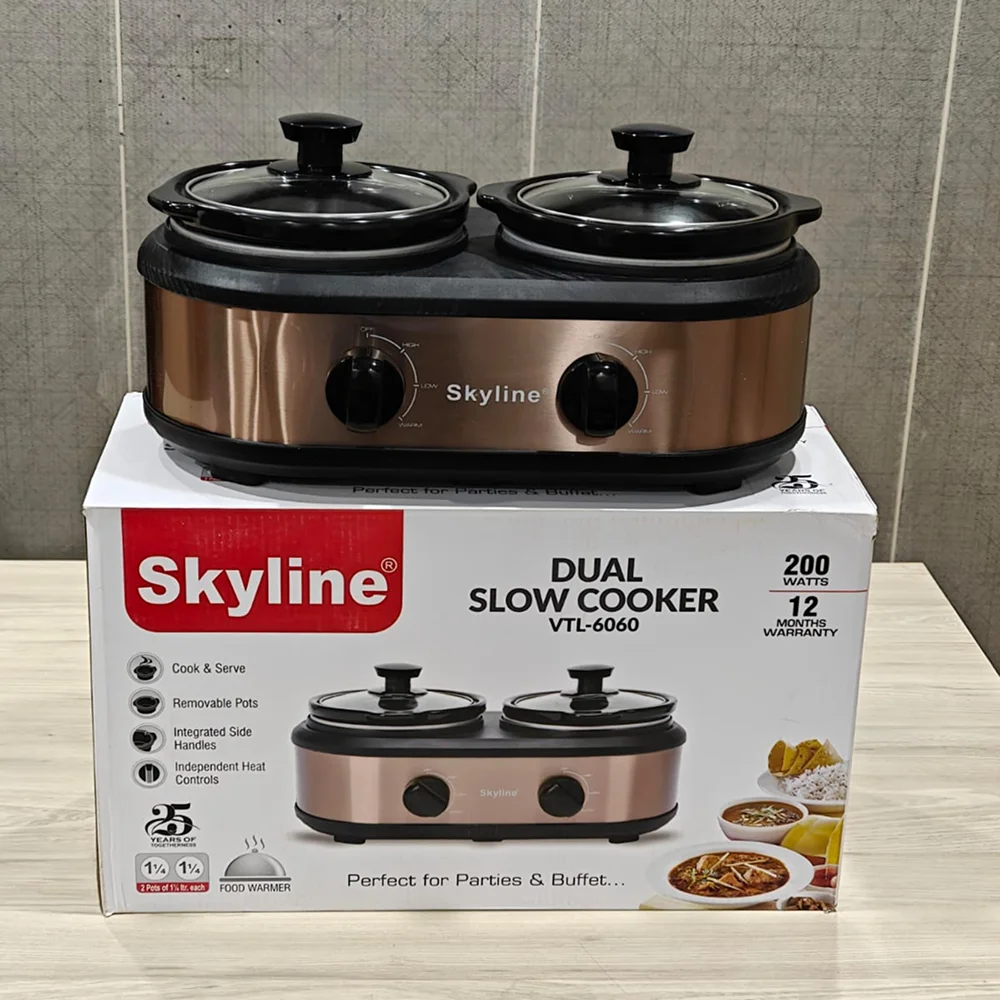 The Skyline dual-pot slow cooker brings versatility and convenience to your kitchen, allowing you to cook two dishes simultaneously with its dual 1.25L ceramic pots. Powered by a 200W energy-efficient motor, it ensures even cooking while preserving nutrients and enhancing flavors. Each pot has independent temperature settings, and the transparent vented lids let you monitor cooking with ease. Its compact, stylish design, along with removable dishwasher-safe pots, makes it perfect for everyday meals, family dinners, or preparing multiple dishes at once.