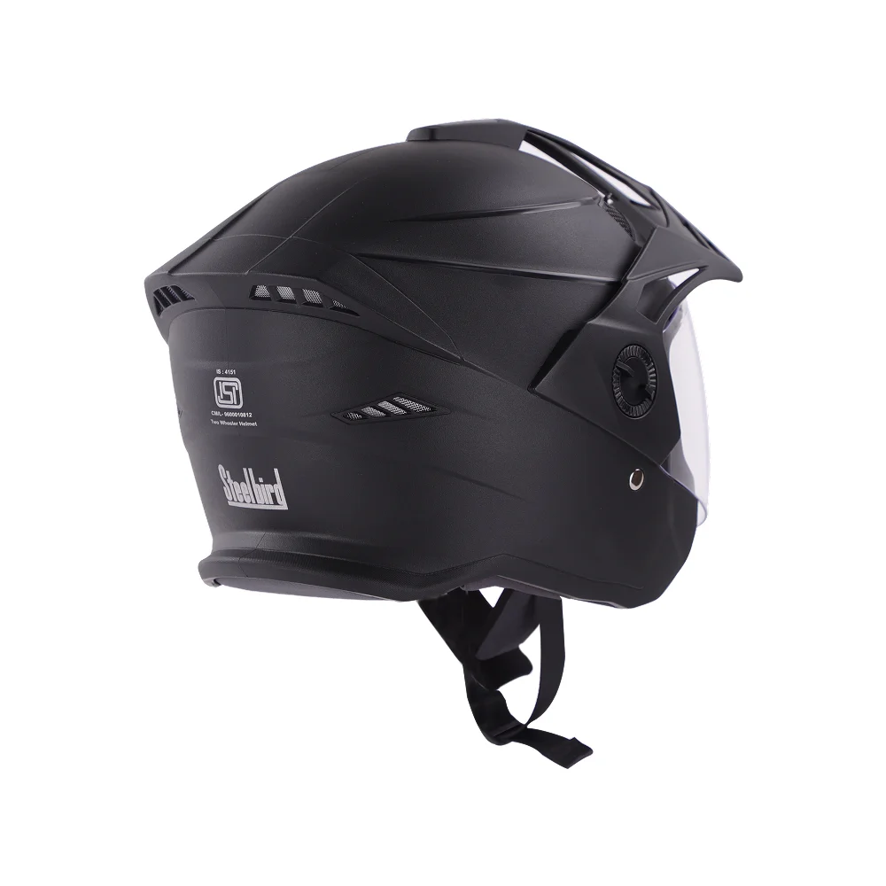 The Steelbird open face helmet with inner sun shield is designed for riders who prioritize safety and comfort. Its hard, high-impact thermoplastic shell and EPS concussion padding provide superior protection, while the quick-release micro metric buckle ensures secure and easy fastening. The helmet features a clear visor with an optional smoke visor, dynamic ventilation with Naci duct technology, and a breathable, detachable interior that is washable and Bluetooth-compatible. Additional comfort comes from padded neck protection and a flip-up chin guard, making it ideal for daily commuting, long rides, and motorbike enthusiasts. Stylish, durable, and ISI certified, it also makes a perfect gift for friends and family.