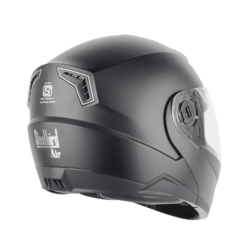 The Steelbird with inner smoke sunshield is designed to provide maximum safety and comfort for riders. Its hard thermoplastic shell with matte finish ensures superior protection, while the clear visor and inner smoke sunshield offer excellent visibility and sun protection. The helmet features a detachable, washable, ventilated interior compatible with Bluetooth kits, breathable padding with neck protection, and a one-button flip-up chin guard for ease of use. Quick release micro metric buckle and buckle closure mechanisms provide secure fastening. Ideal for men and women, it is perfect for daily commuting, long rides, and motorbike enthusiasts.