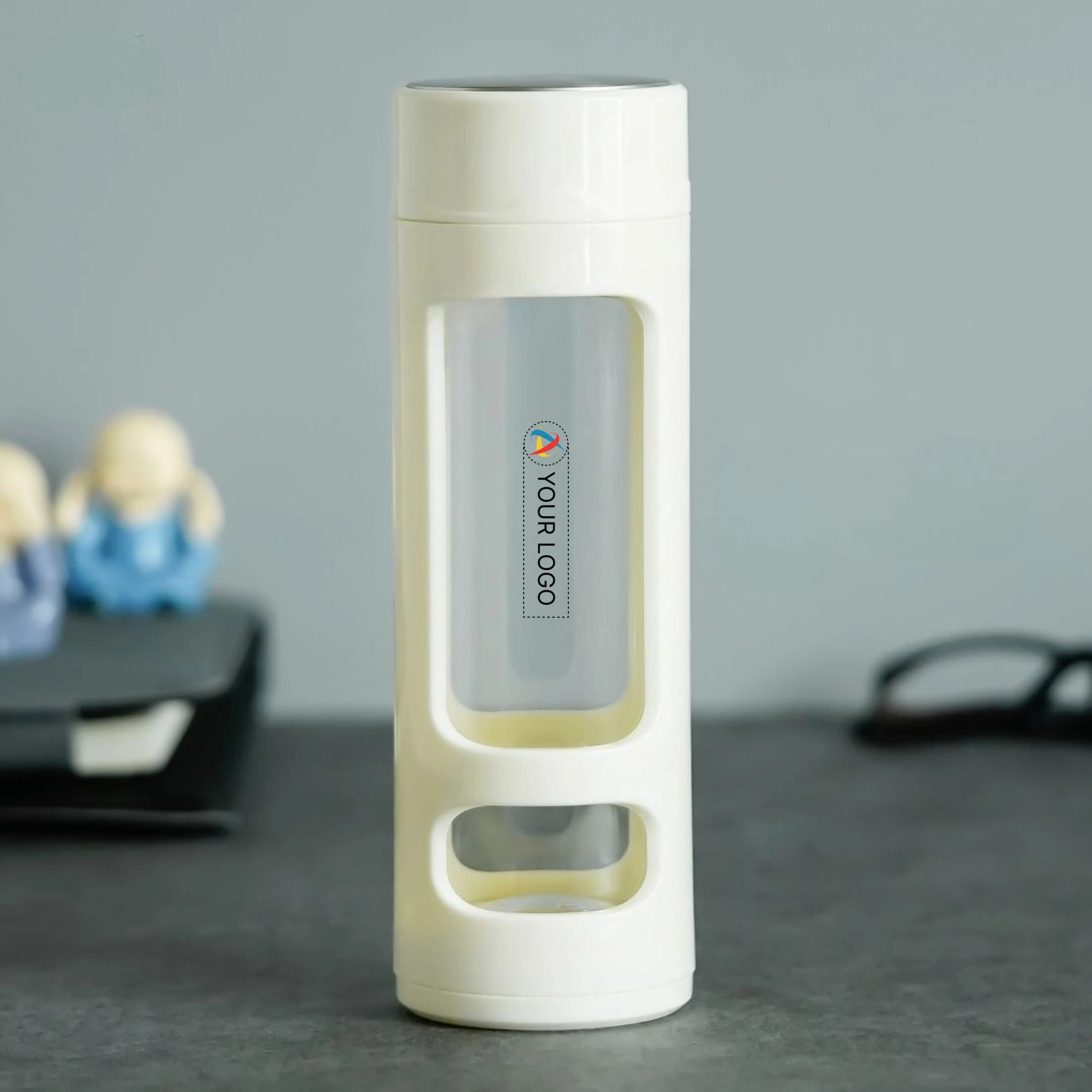 Equipped with an integrated tea infuser and a clear viewing window for convenient content visibility. Heat-resistant borosilicate glass ensures safe use with hot beverages, while the protective outer casing offers secure handling. Designed for high-impact sublimation printing to enhance brand presence. Ideal for wellness hampers, eco-lifestyle gifting, tea-themed promotions, and executive welcome kits.