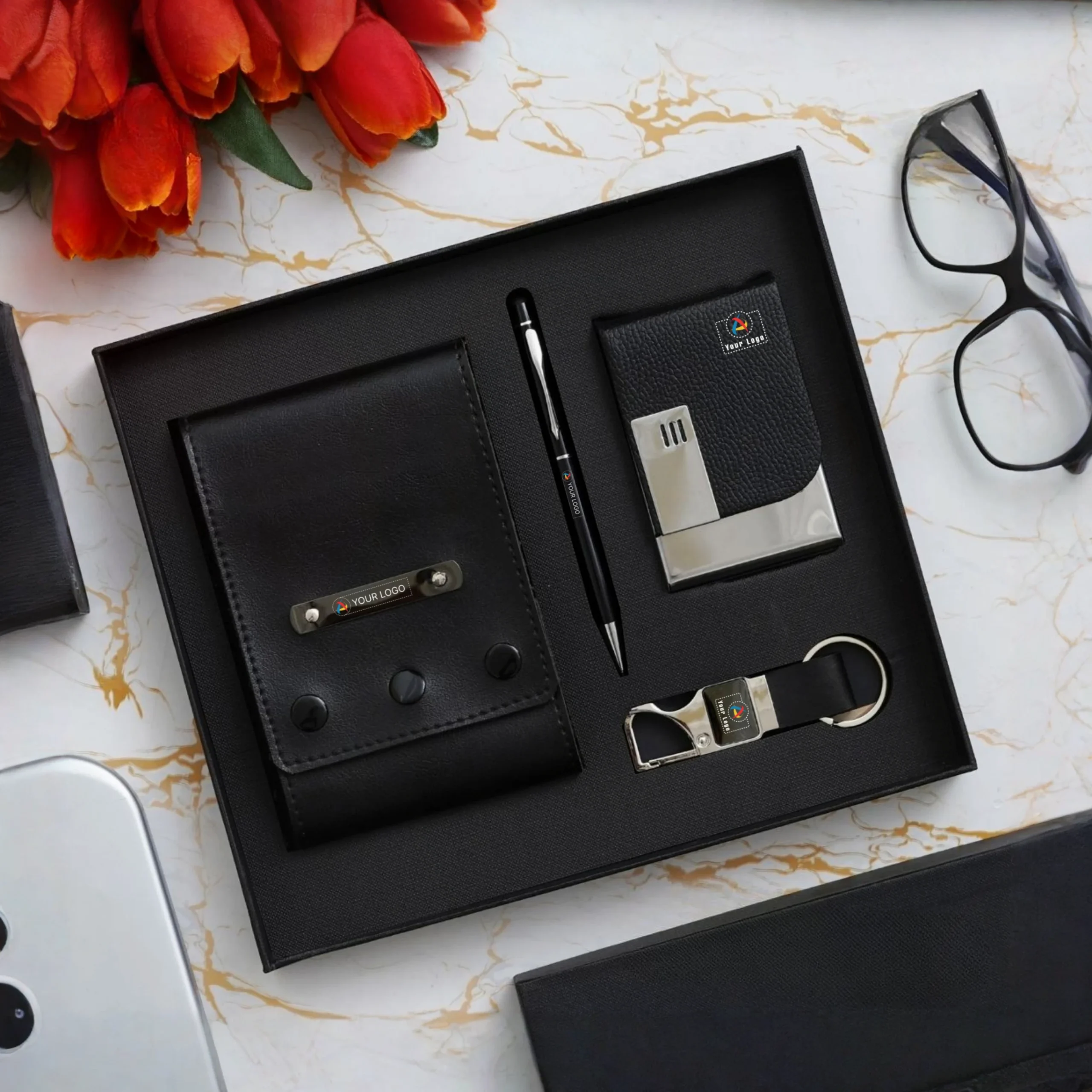Elegant gifting solution crafted for professionals who value organization comfort and branded utility
