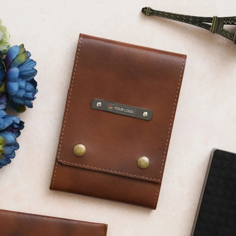 Crafted from premium vegan leather, this travel notepad is designed to be both sleek and functional. Its compact size makes it easy to carry during meetings or travel, while offering a refined writing experience. Ideal for corporate travel kits, executive gifting, or customized brand stationery.