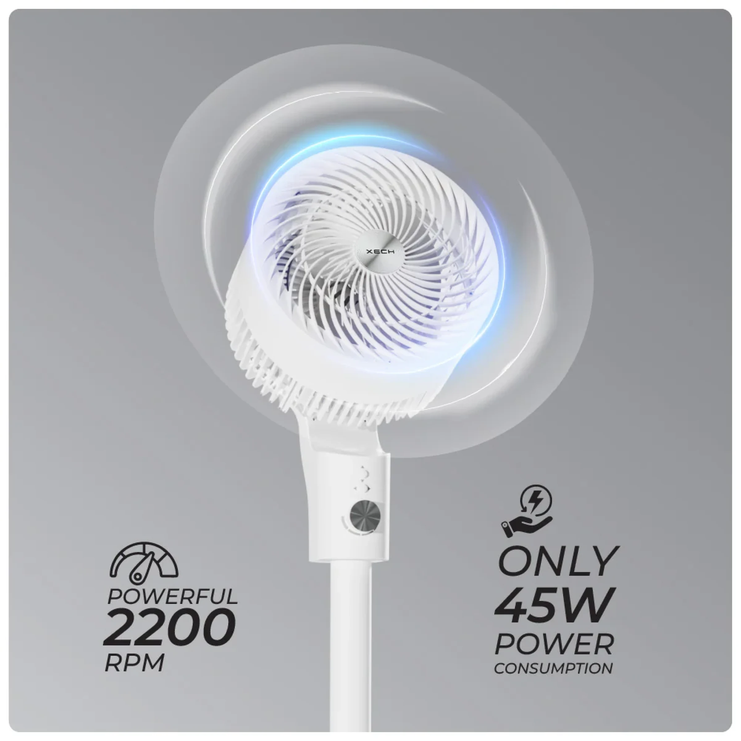 Designed for efficient air circulation with a premium retro aesthetic, the Xech air circulator fan delivers powerful performance using a 45W low power motor while maintaining energy efficiency for daily use. A robust motor operating at 2200 RPM ensures strong airflow across spaces, supported by omni-directional oscillation for even air distribution in every direction. Six adjustable wind speed levels allow precise airflow control to suit varying comfort needs, while a smooth retro dial control offers intuitive operation with a refined tactile feel. A practical 3-level height adjustment enhances placement flexibility for desks, floors, or elevated surfaces. Built with a compact yet impactful design, branding space is thoughtfully integrated to support custom logo or design printing, making it suitable for visibility-driven use cases. Ideal for corporate gifting, study areas, conference rooms, client appreciation programs, modern workspaces seeking performance with style.