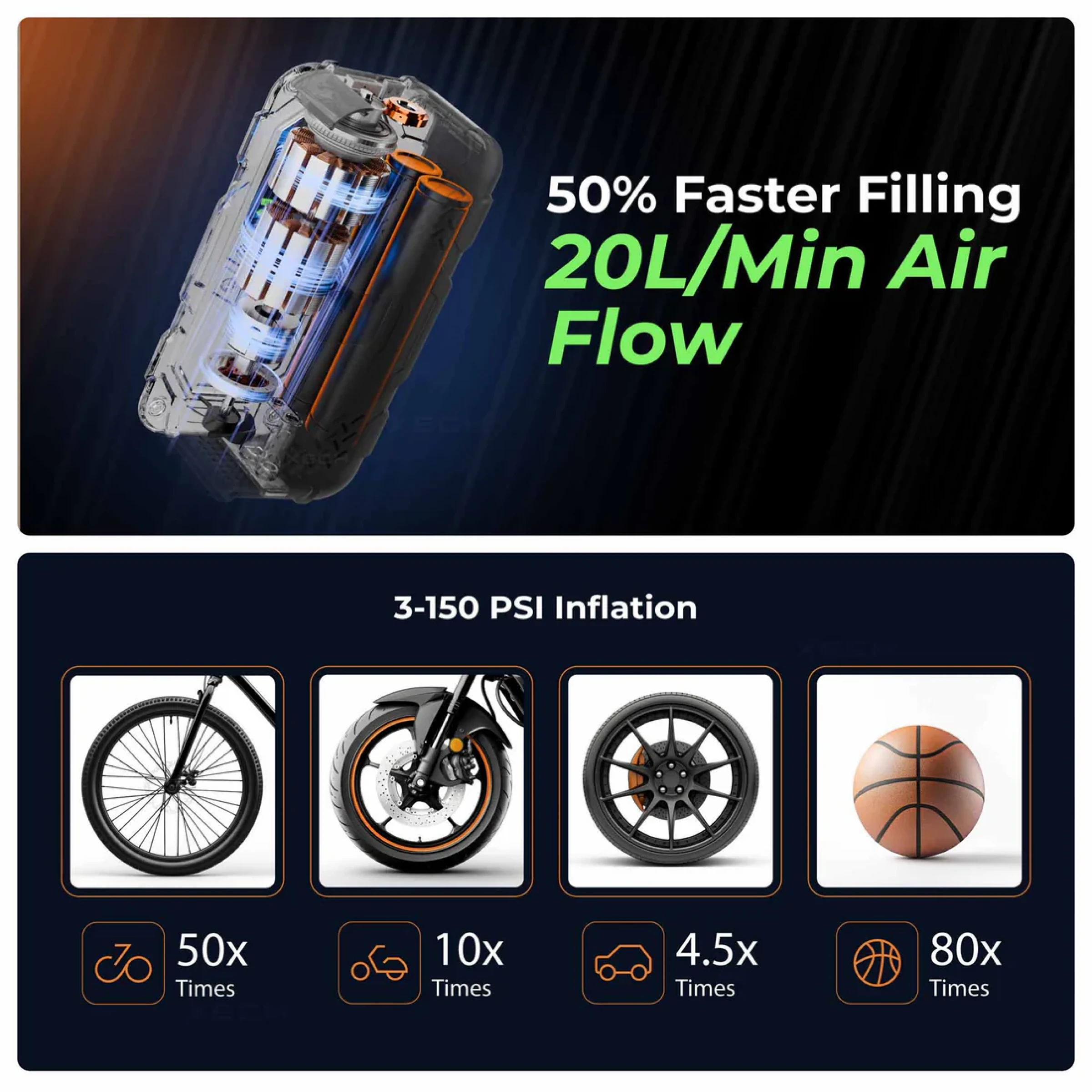 - 20L per minute fast air flow
