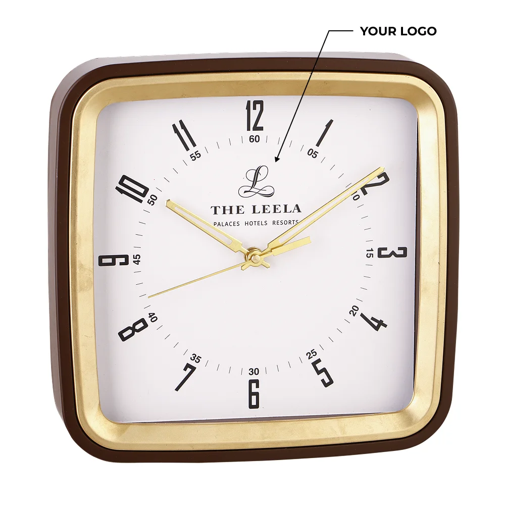 Designed to add a refined and professional touch to interior spaces, this analog wall clock combines practical timekeeping with modern décor appeal. Featuring a 9.75″ × 9.75″ frame and a clear 8″ × 8″ dial, it ensures easy time visibility in office interiors and reception areas. With a net weight of 525 g and a gross weight of 675 g, the clock offers a sturdy yet manageable build for secure wall mounting. Powered by a single AA battery, it delivers reliable and hassle-free daily operation. The classic analog display complements corporate and contemporary settings effortlessly. Dedicated space for custom logo and design printing makes it a strong branding solution, ideal for corporate gifting and brand promotions.