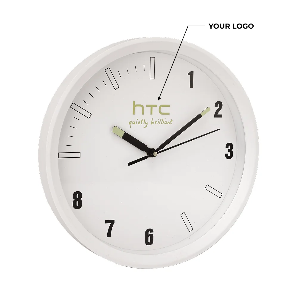 Designed to complement professional and modern interiors, this analog wall clock combines everyday utility with refined visual appeal. The 10″ diameter frame paired with a spacious 9″ dial ensures clear and comfortable time visibility from a distance, making it suitable for office interiors and reception areas. With a net weight of 430 g and a gross weight of 575 g, the clock offers a lightweight yet sturdy build for easy wall mounting and long-term use. The classic analog display adds a timeless touch that blends seamlessly with corporate and contemporary décor. Dedicated space for custom logo and design printing transforms it into an effective branding medium. Ideal for corporate gifting and brand promotions, this wall clock delivers lasting visibility while enhancing the overall look of any workspace.
