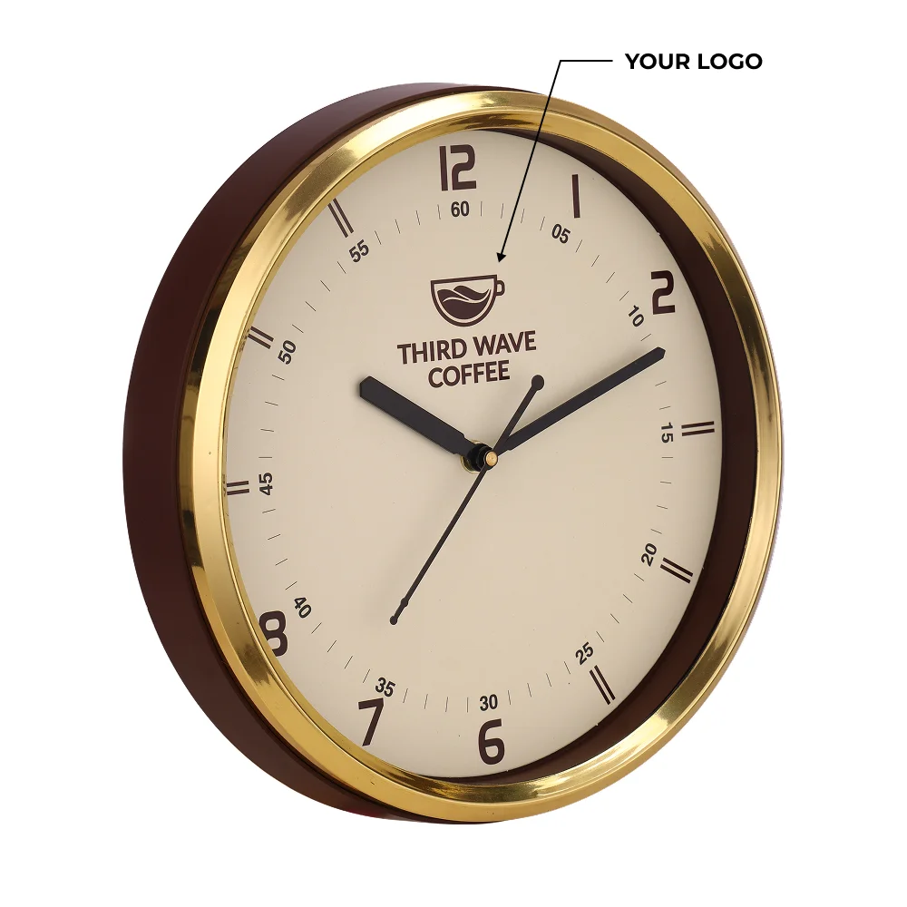 Modern wall clock featuring a 10-inch body and a clear 9-inch dial offers a sleek, balanced look suited for professional and personal spaces. Sturdy construction with 570 gms gross weight and 420 gms net weight ensures dependable durability for daily use. Smooth analog movement delivers accurate timekeeping, making it a reliable choice for long-term placement. Spacious branding area supports custom logo and design printing, enhancing its value as a promotional or corporate merchandise item. Ideal for corporate gifting, office cabins, festive hampers and stylish home décor setups.